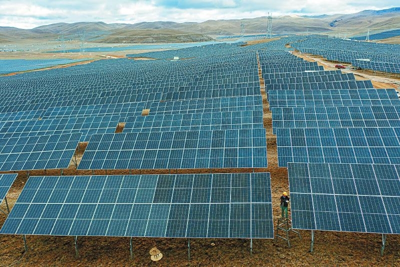 11月3日,技术人员在甘孜州乡城县国家电投兴川实证光伏电站对光伏阵列进行最后的调试,它是全球首个超高海拔光伏实证基地。