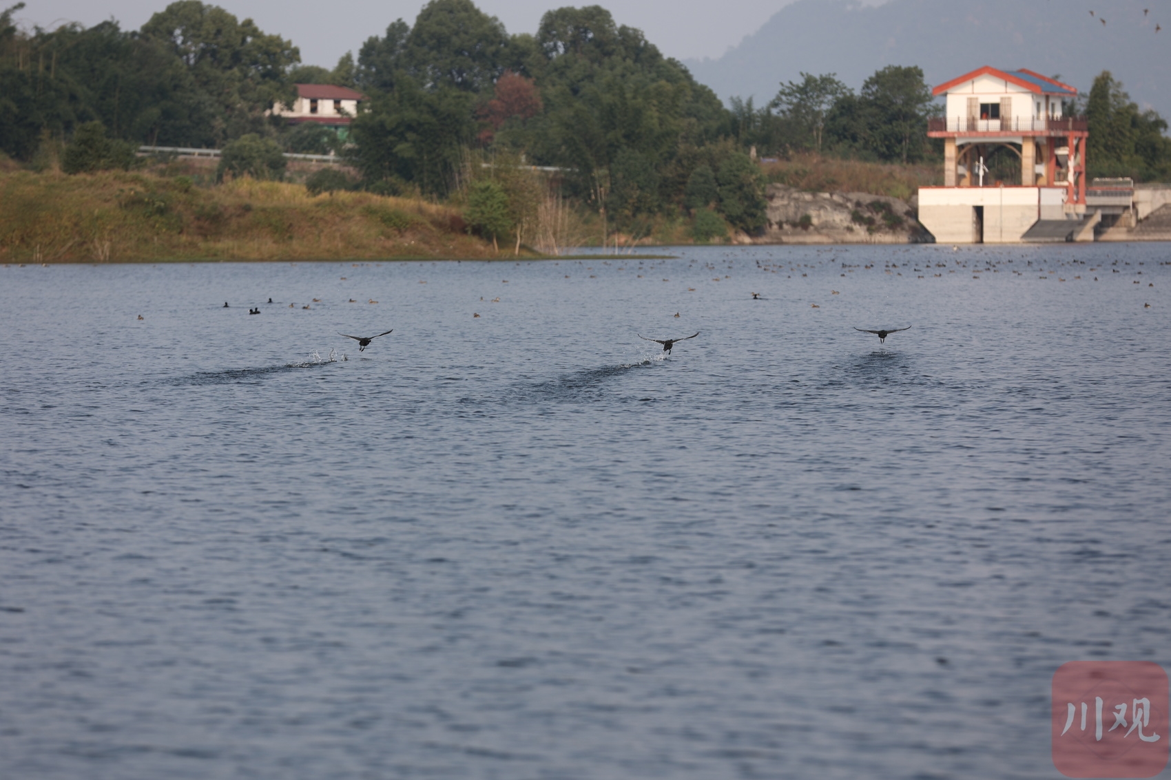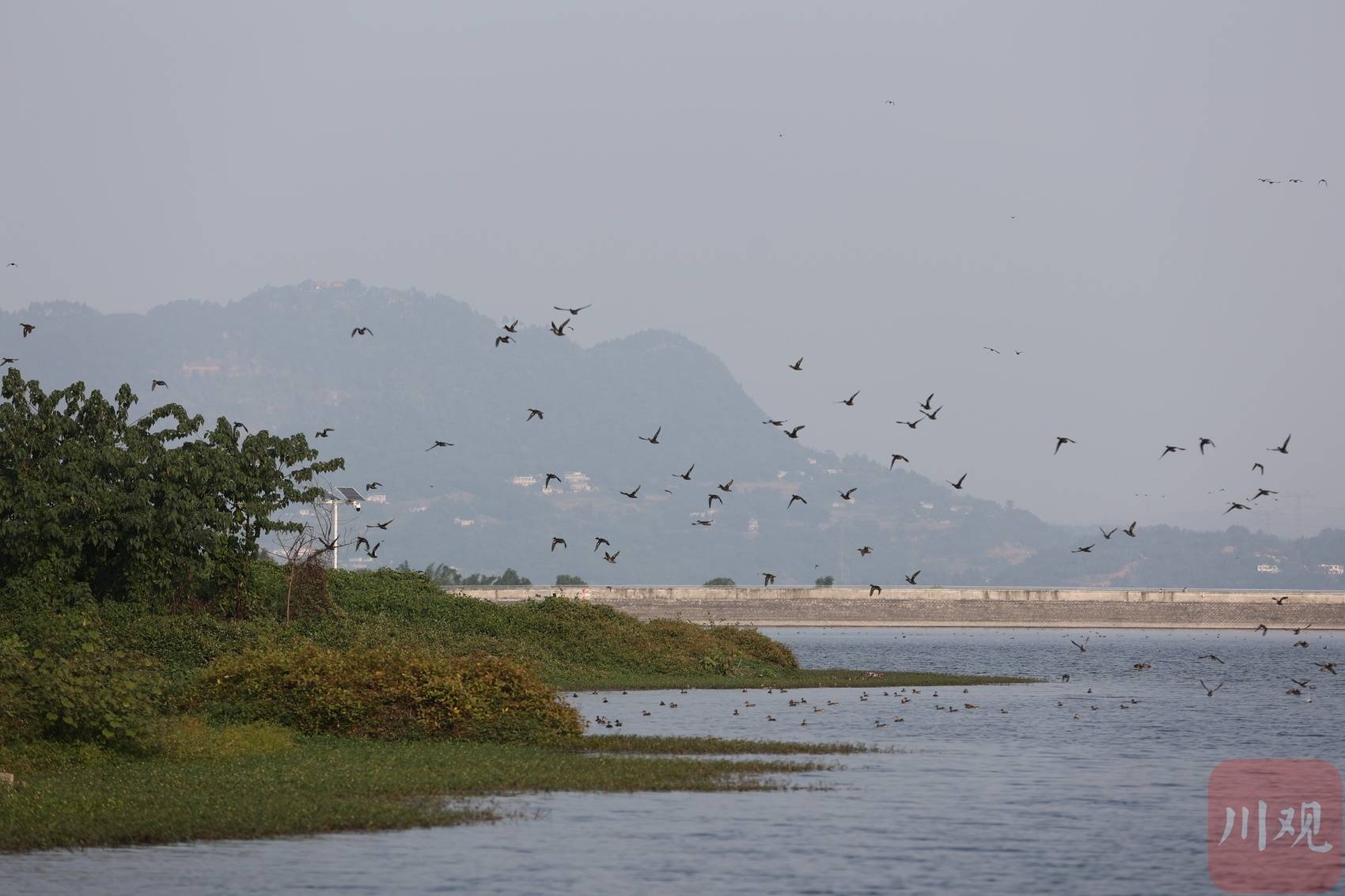 入冬以来,成群结队的候鸟飞抵宜宾市长宁县东山水库,它们时而俯身觅食,时而展翅高飞,好不惬意。近年来,随着长宁县生态环境持续优化,每年冬季,都有数以万计的候鸟飞抵东山水库越冬。在湖水映衬下,勾勒出了一幅幅灵动唯美的生态画卷。