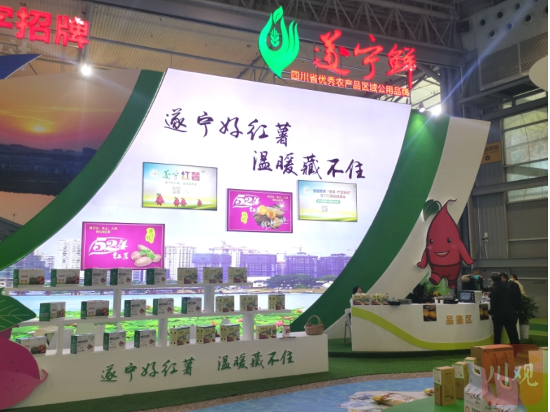 遂宁馆的大屏幕上在推介当地特色红苕。邵明亮 摄