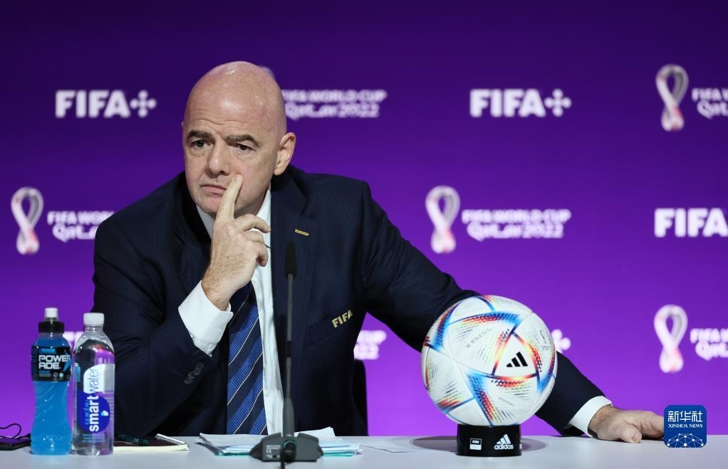 资料图:这是11月19日,因凡蒂诺在2022年卡塔尔世界杯主新闻中心举行新闻发布会,并回答记者提问。新华社记者兰红光摄