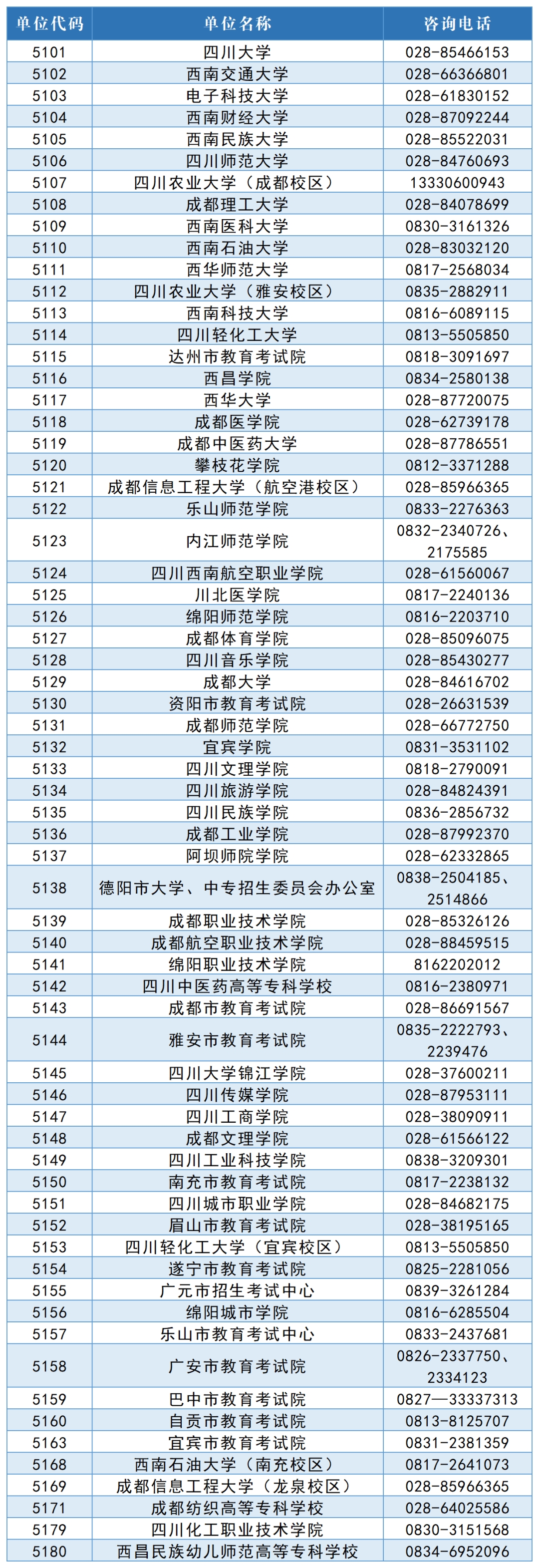 四川省2023年硕士研究生招生考试报考点咨询电话:
