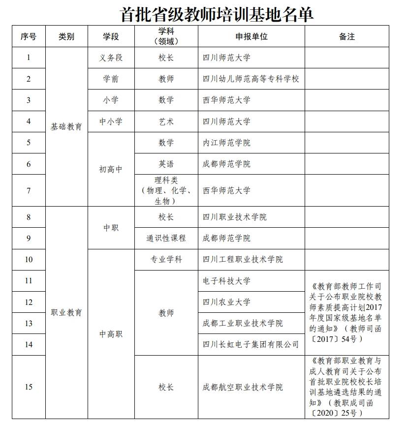 四川在线记者12月8日获悉,四川省教育厅公布了首批省级教师发展综合改革试点区、教师培训基地和教师教育实践基地名单。