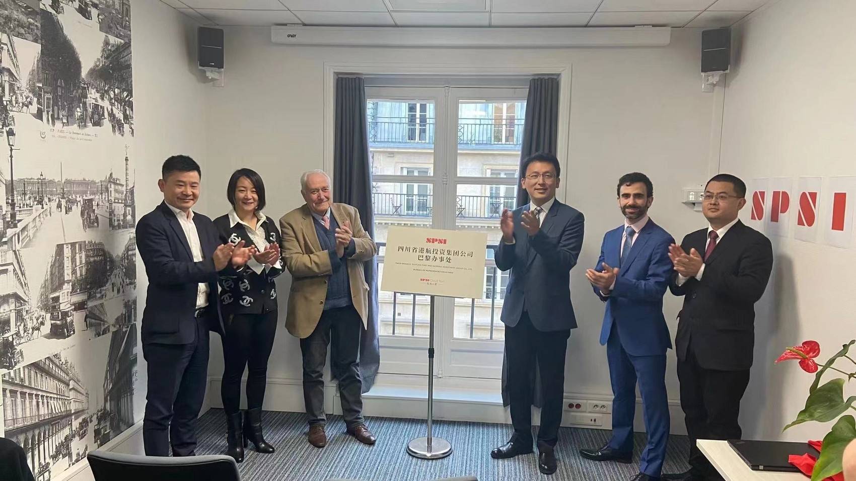 “四川省港航投资集团公司巴黎办事处”正式挂牌。(受访者供图)