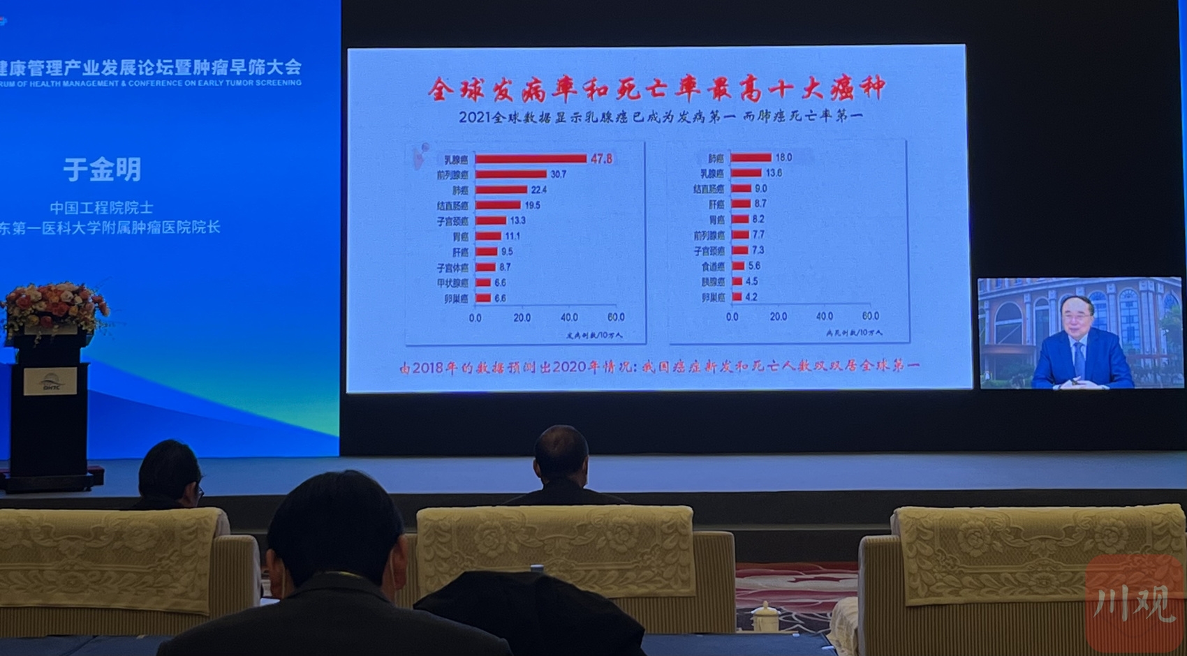 “先看看2021年全球数据,乳腺癌已成为全球发病率第一的癌症,肺癌死亡率高居首位;2020年我国共有癌症新发病例457万例,达全球的23.7%;2021年我国新冠肺炎死亡率为0.013%……抓好新冠肺炎疫情防控同时,肿瘤治疗也非常重要。”12月12日,首届川澳健康管理产业发展论坛暨肿瘤早筛大会在成都开幕, 中国工程院院士、山东第一医科大学附属肿瘤医院院长于金明视频分享观点。