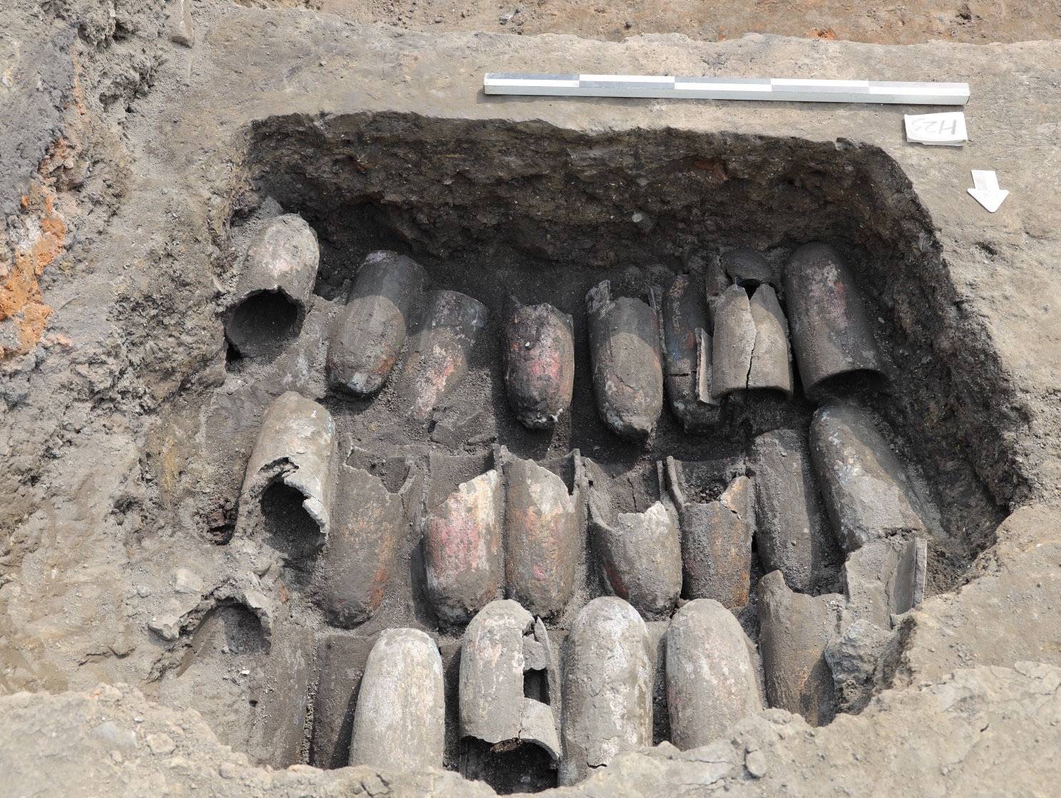 经过为期2个月的考古发掘,清代宝川局遗址揭露遗迹有窑炉30座、炉房6处、方池6座及排水沟3条,同时出土了数量众多的坩埚、炼渣和钱币,钱文可辨以“乾隆通宝”为主,另有少量“嘉庆通宝”。