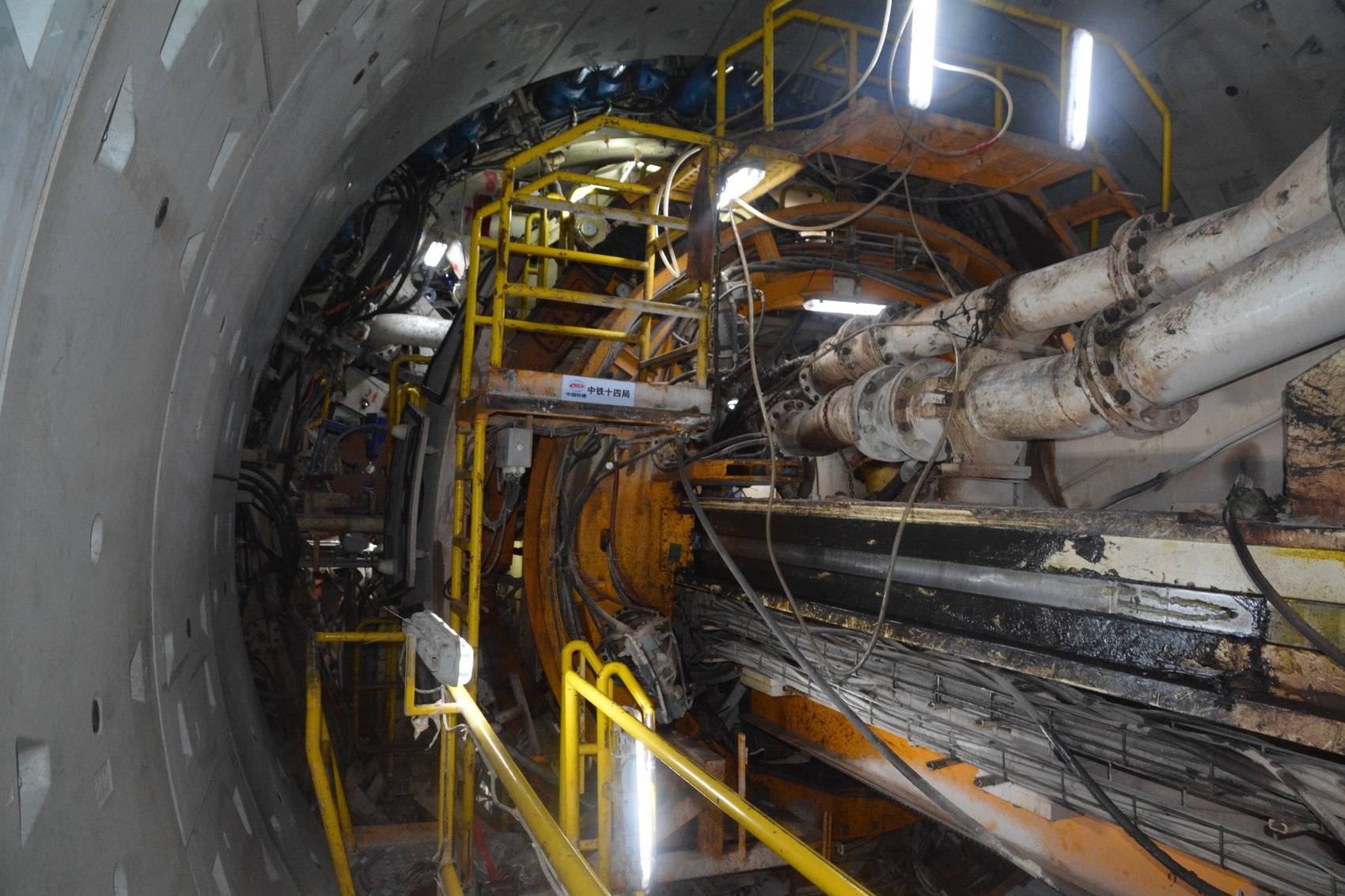 而此时,在她脚下,沱江底部20多米的地下深处,直径8.24米、长近100米、重达千吨的“同城二号”盾构机正缓缓驶离江底,并正式宣告成都轨道交通首次采用双模盾构长距离穿越江河成功。