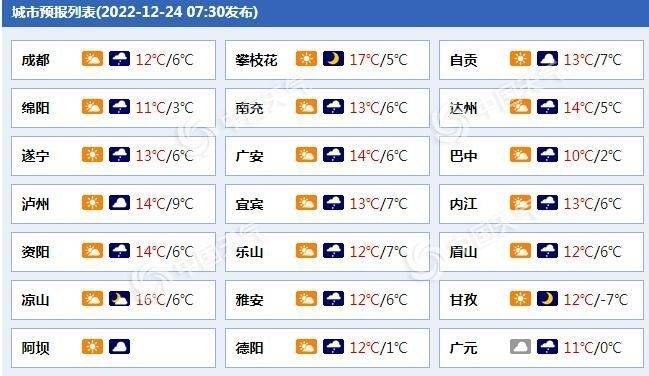 周末(12月24日至25日)两天,四川降水发展增多,盆地部分地区有雨夹雪或小雪,川西高原局地有大雪;雨雪发展的同时,气温也将下降,公众请注意做好防范措施,谨防感冒。