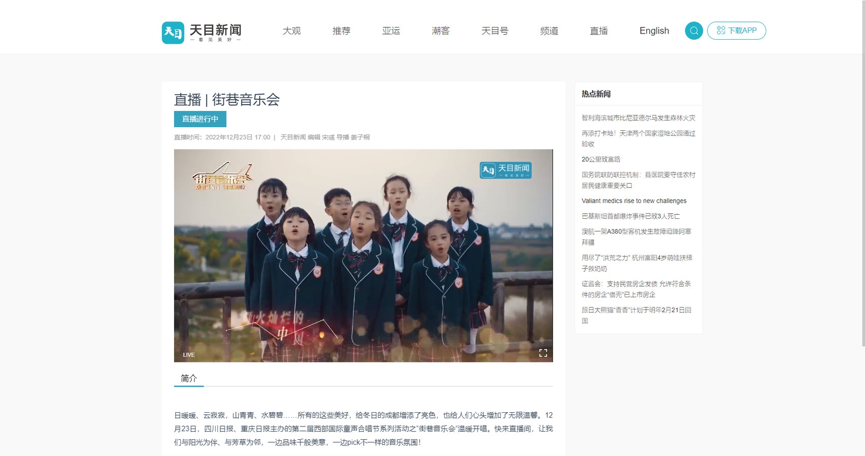 12月23日,“街巷音乐会”全国媒体同步直播。
