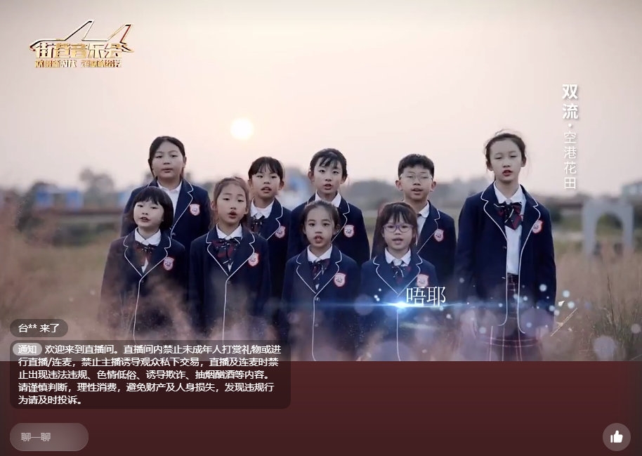 “唱得太好听了,给西部国际童声合唱节点赞。”“一进直播间,瞬间感觉暖起来了。”“这些地方太美了,这周末一起去打个卡。”……整个直播过程中,全国各大直播平台的网友们纷纷为合唱节点赞,为双流区打CALL,为团队精彩的表演叫好。