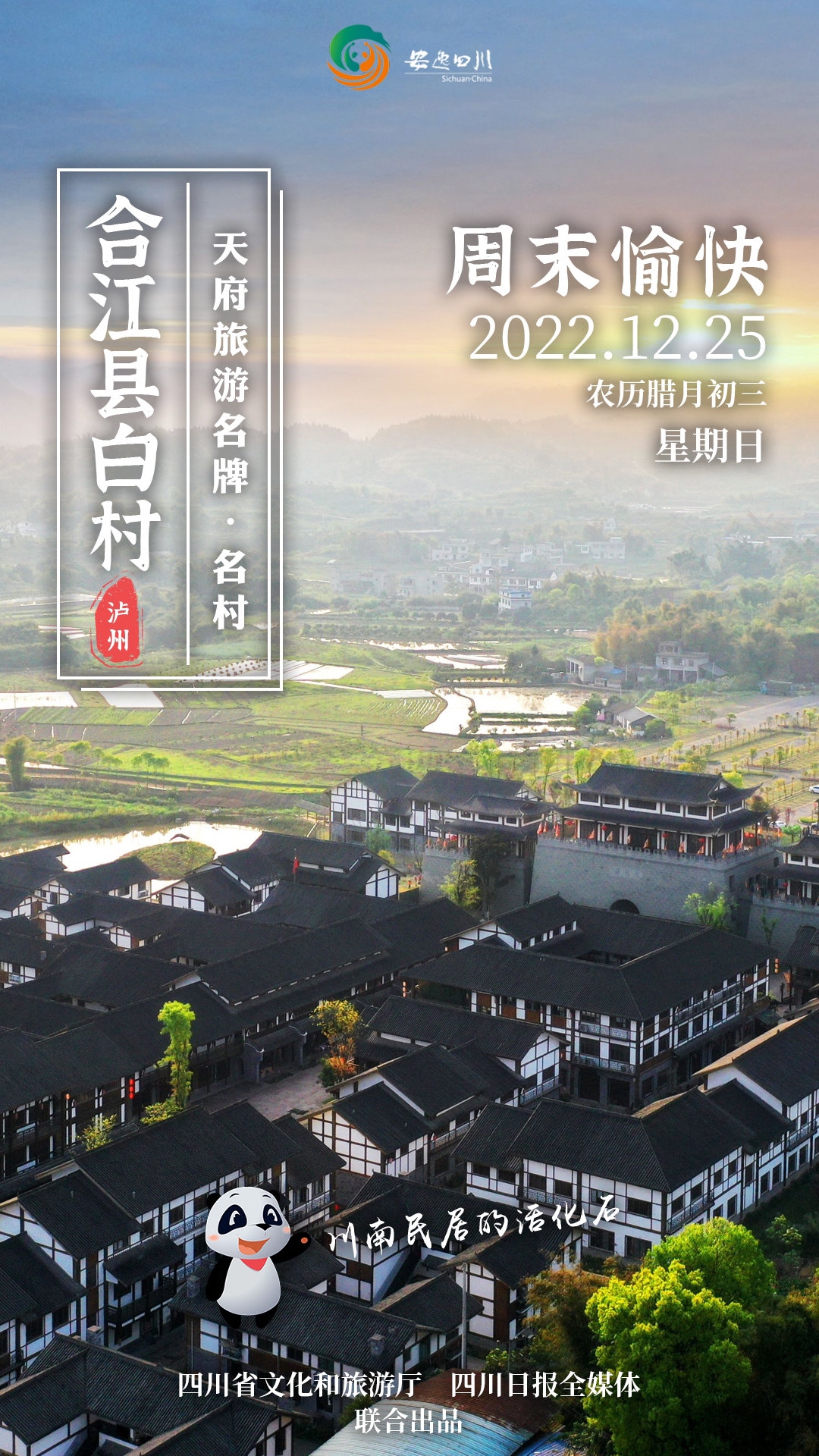 12月25日,星期日,周末愉快。今日天府旅游名牌日历海报走进天府旅游名村——泸州市合江县白村。