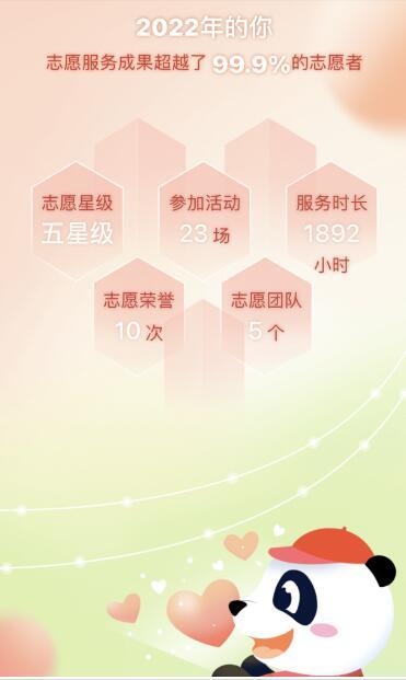 新上线的文旅志愿服务个人年度报告将从服务时长、服务类型、服务偏好、志愿星级、志愿荣誉等方面,全方位展现文旅志愿者过去一年的志愿服务生活,并生成年度服务关键词,为2022年的文旅志愿服务留下温馨记忆。