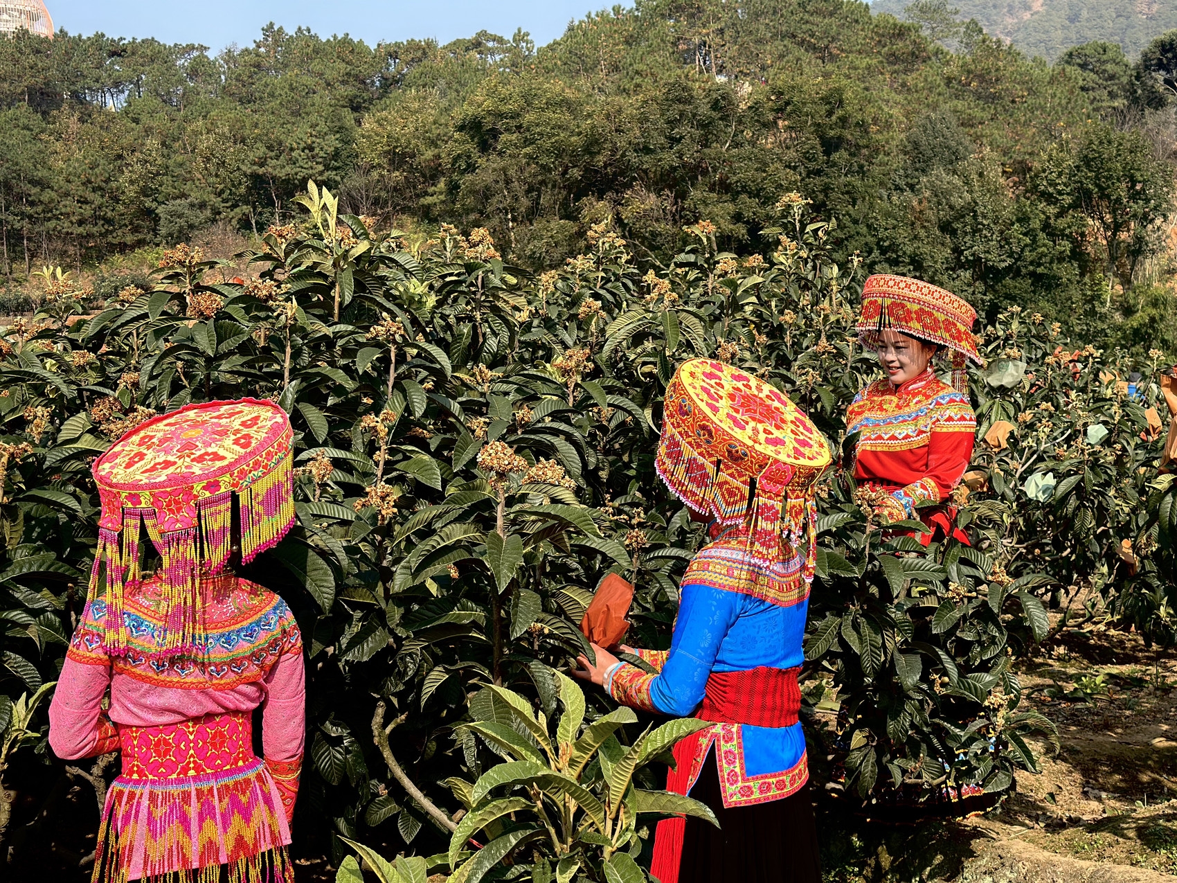 在高丰村省级乡村振兴示范点暨傈僳原乡·安宁枇杷谷景区,傈僳姑娘小伙们正忙着给琵琶套袋,这里规划了高标准枇杷种植示范园、双创孵化展销交易中心、枇杷加工仓储物流中心三大产业项目,以及月光枇杷台、果林小火车、枇杷奇遇部落、安宁隐庐精品酒店、傈僳五寨五大农文旅融合项目。