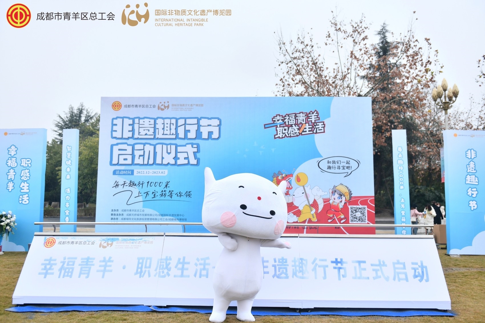 活动现场设置了主舞台、职工风采打卡点、茶歇区、宝箱内容展示区等,非遗人偶“蹦巴”也带来不少互动。作为工会十大服务项目之一,非遗趣行节结合全民健康元素,成为数字化赛道+线下多元体验模式下融合创新的典型活动,以非遗博览园“蹦巴赛道”为运动核心区,同时覆盖青羊区打造“1+N”条工会职工步道。“目前青羊区已搭建27条职工寻宝数字步道,线上寻宝体验活动于12月中旬开放体验名额,已有1500人参与其中,活动将持续至2023年2月。”成都市青羊区总工会副主席唐宁表示。