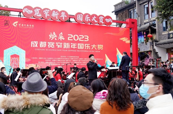 12月31日,由中共成都市委宣传部指导,成都市文化广电旅游局、中共成都市青羊区委员会、成都市青羊区人民政府、成都文化旅游发展集团有限责任公司主办的《焕采2023 成都宽窄新年国乐大赏》在宽窄巷子东广场燃情奏响。