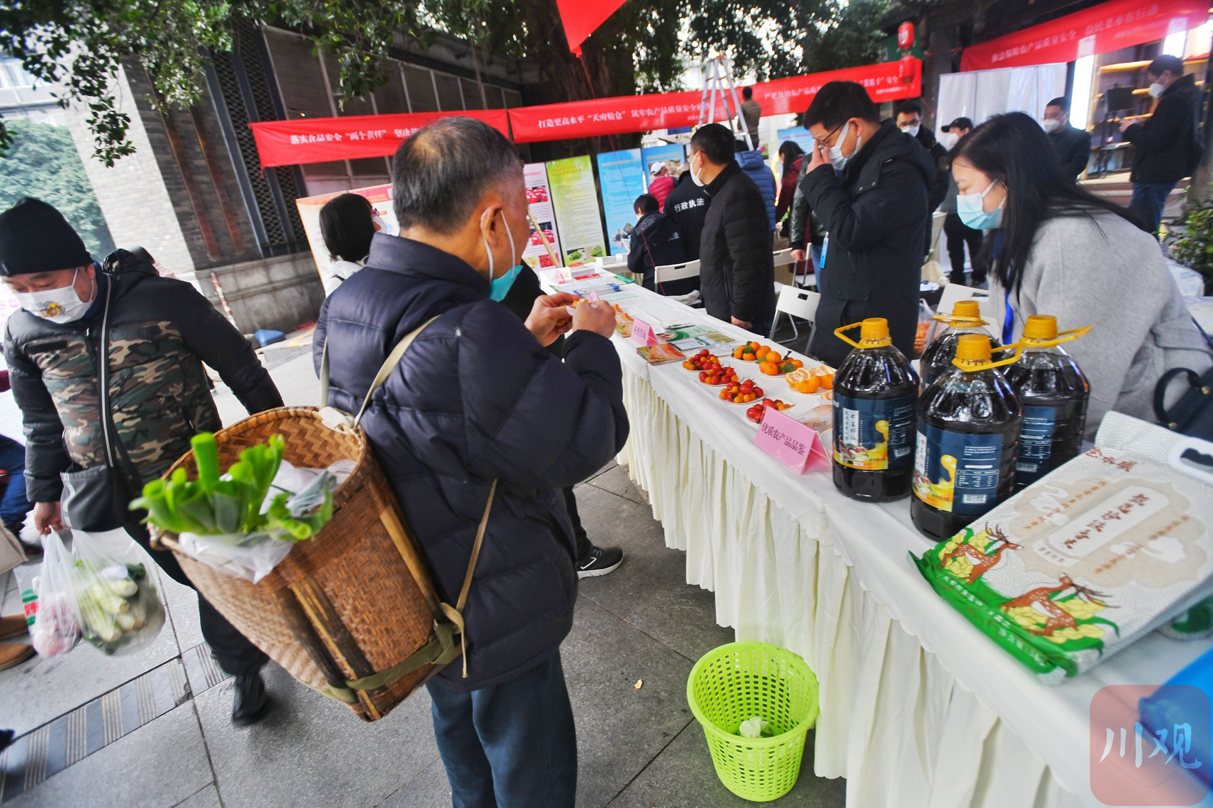 2023年1月1日元旦节,是新修订的《中华人民共和国农产品质量安全法》正式施行第一天,省、市相关部门都开展了宣传活动,四川在线记者在成都宽巷子的益民菜市场口看到,宣传的展板、展台都吸引了过往的市民停下脚步,水果番茄是基因食品吗?储存杨梅的注意事项有哪些?空心菜是“万毒之王”?如何科学识别和安全食用鲜活水产品?守护舌尖安全的展板内容不仅向市民普及农产品质量安全知识,还强化群众农产品安全意识,“这下对了,看了宣传进菜市场买菜都放心了。”背着菜兜的市民张先生笑着说。