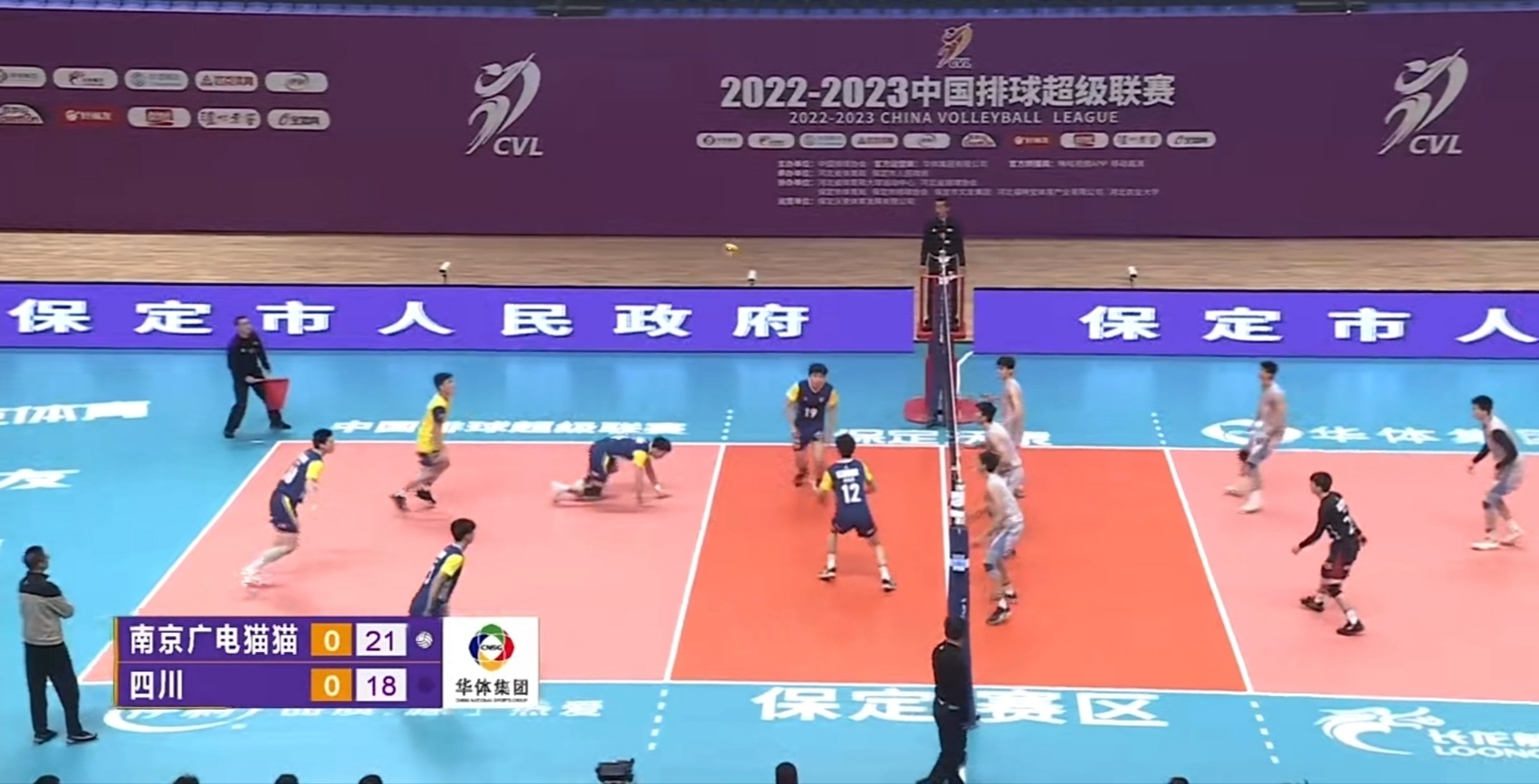 开局阶段至关重要,总比分落后的南京广电猫猫显示出更强的求胜欲望,进入状态更早,以更为强势的发球连续得分。双方陷入到多个长回合的对垒中。稍显慢热的四川男排以8:14在开局阶段落后。请求暂停重新布置战术后,四川男排开始逐渐追分,一度迫近至17:18仅仅落后一分。但在首局末端,对手高效的拦网连续得分,最终南京广电猫猫以25:20拿下首局。