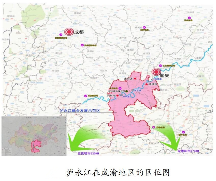 川渝滇黔结合部经济中心。泸永江融合发展示范区将强化全国性综合交通枢纽作用,扩大开放开发战略叠加效应,提升对区域资源要素的集聚集成和配置能力,建设成渝地区产业和人口优势承载地,打造川渝滇黔结合部重要经济中心、区域商贸物流中心和长江上游航运贸易中心。