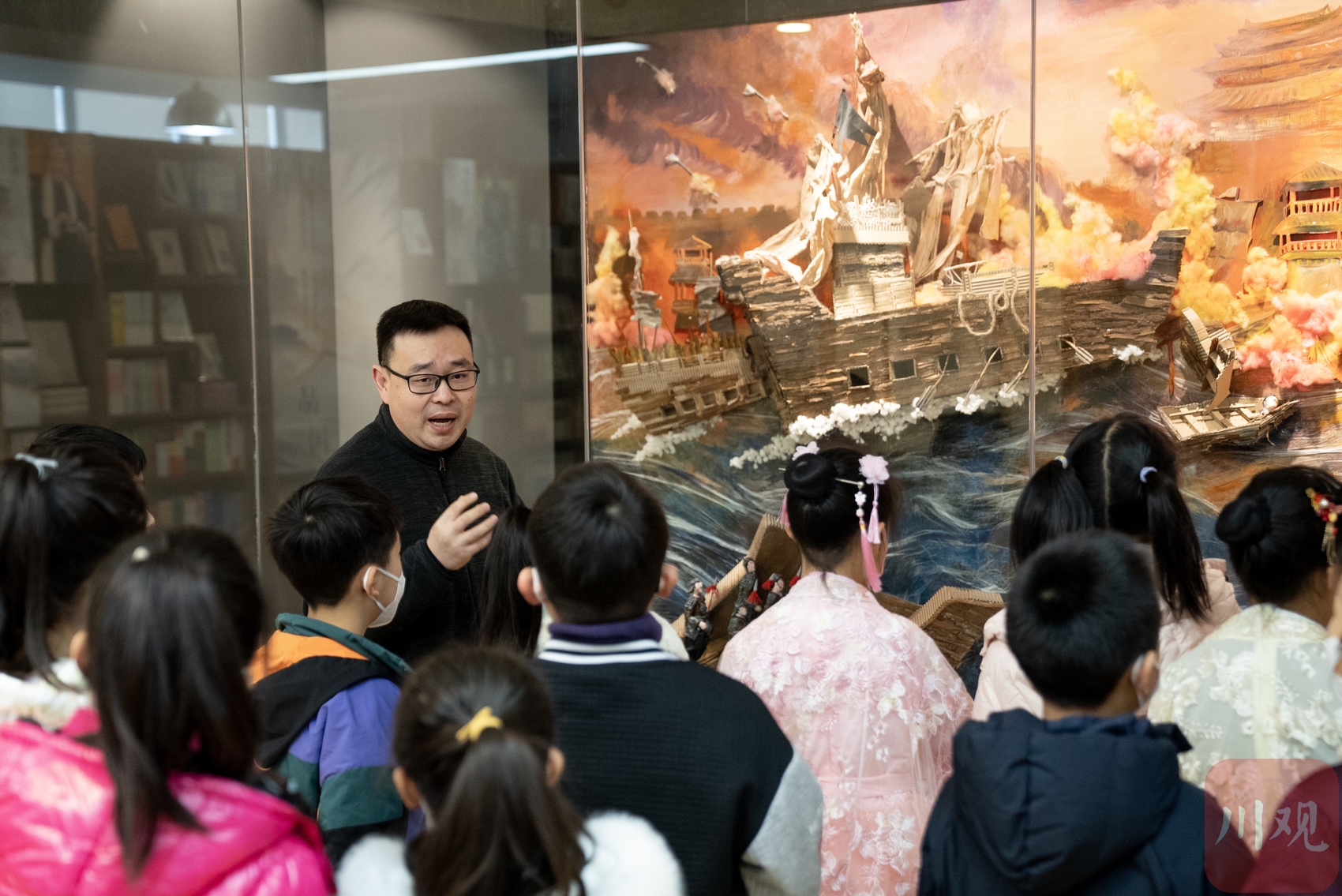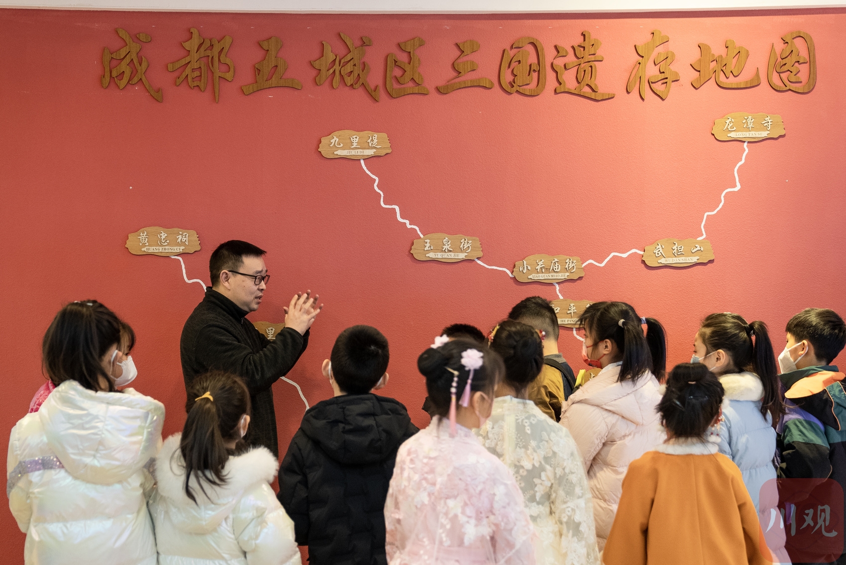 陈凯在给孩子们讲成都市的三国文化