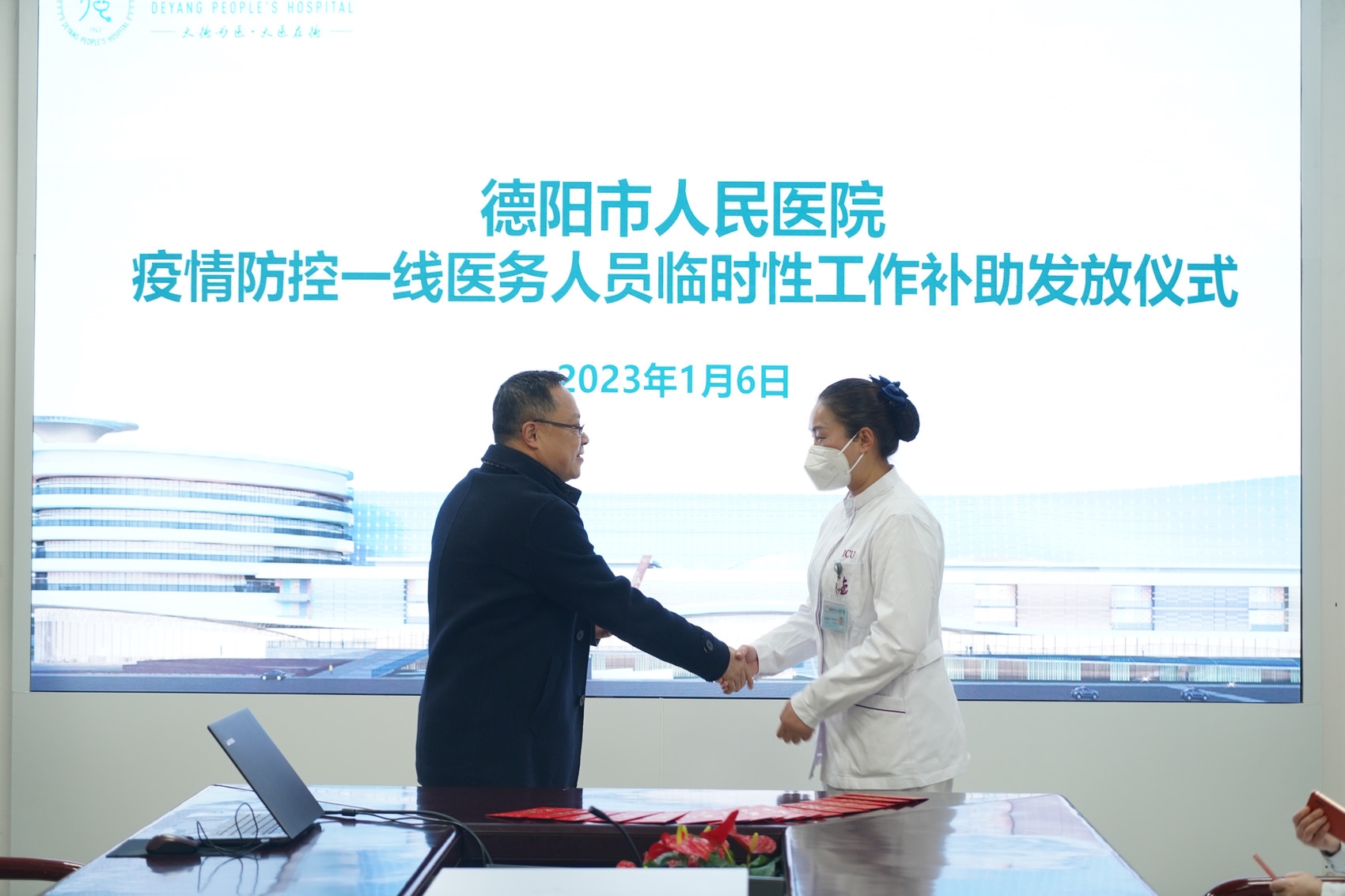 1月6日,德阳市陆续向一线医务人员发放工作补助,图为德阳市人民医院发放现场。
