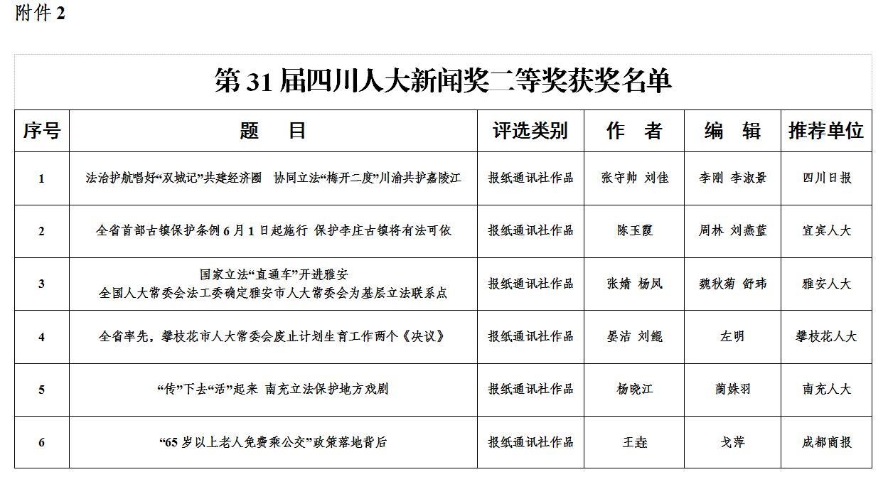 第31届四川人大新闻奖获奖名单日前正式揭晓,68件作品分获一、二、三等奖。这是1月6日记者从第31届四川人大新闻奖评审情况通报暨2023年第一季度新闻通气会上获悉的。