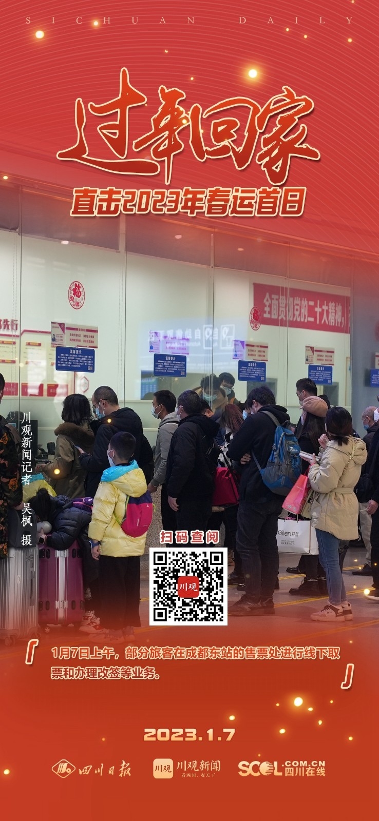 春运首日,四川在线记者与川观拍客奔赴我省车站、机场、码头,镜头聚焦春运首日盛况。一组海报,带您到现场看看吧!