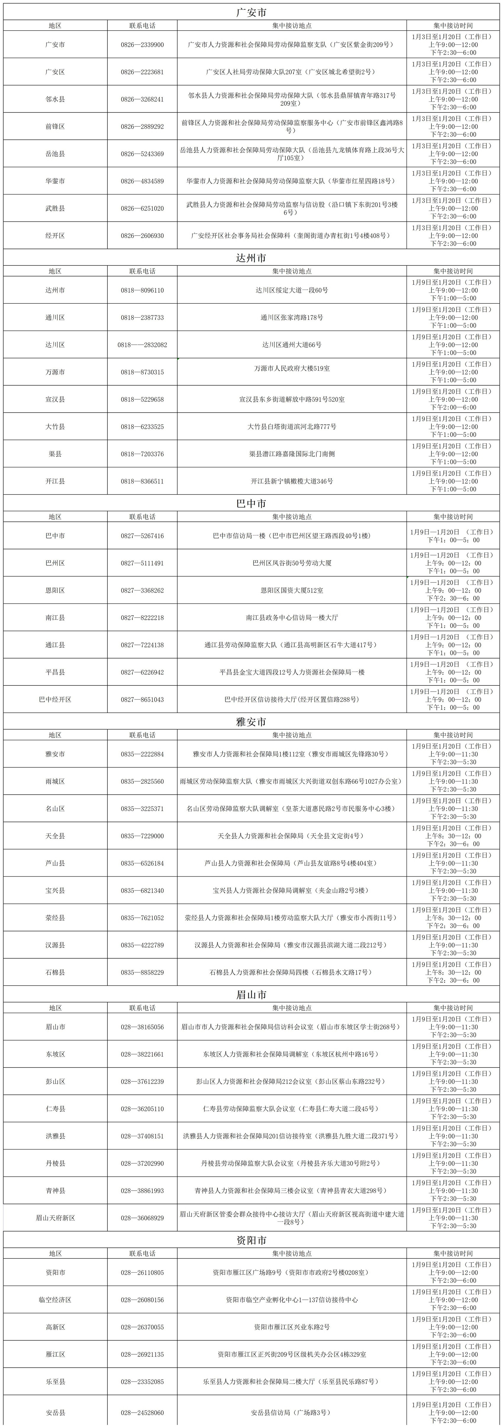 1月9日,四川省、市(州)、县(市、区)三级联合开展2023年春节前根治欠薪集中接访活动。同一天,为方便群众投诉举报,四川省人社厅对外发布消息,向社会公布三级集中接访的联系电话、接访地址和接访时间安排。