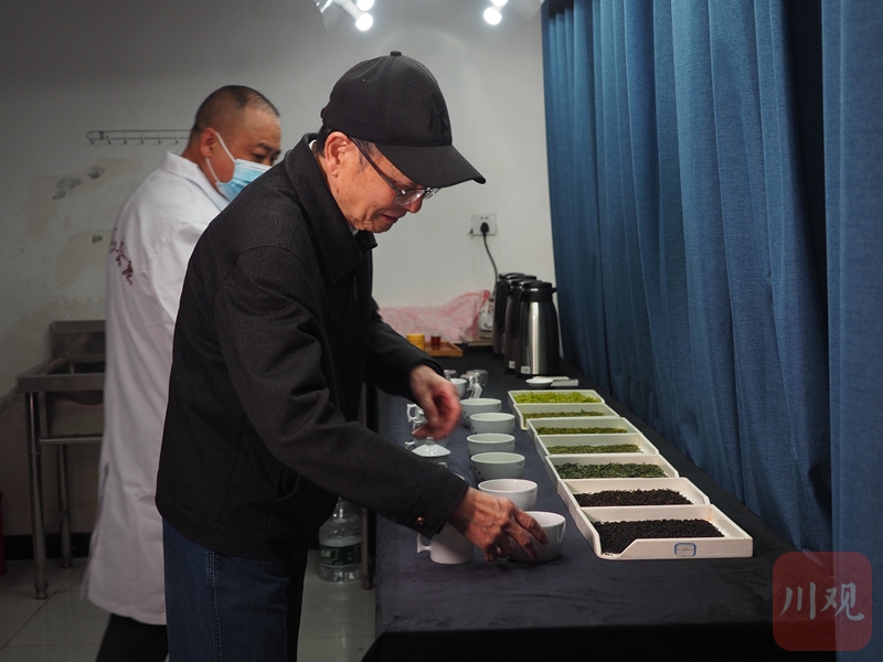 白堃元在旺苍查看今年刚出产的新茶 燕巧 摄
