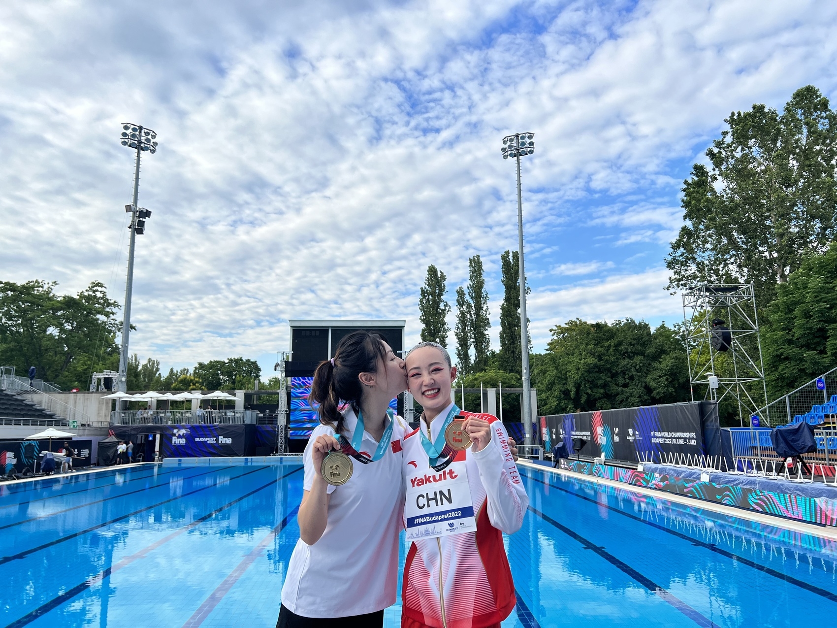 布达佩斯的艳阳洒在8位姑娘挺拔的身姿上,身后大屏幕正是徐徐展开的五星红旗,《我爱你中国》在赛场上方悠然响起。伴着熟悉的旋律,中国花样游泳队的姑娘们开场就以高难度的水中高抛引爆全场。最终,中国花样游泳队以94.7202分夺得金牌,中国姑娘首次站上游泳世锦赛奥运集体项目的最高领奖台。