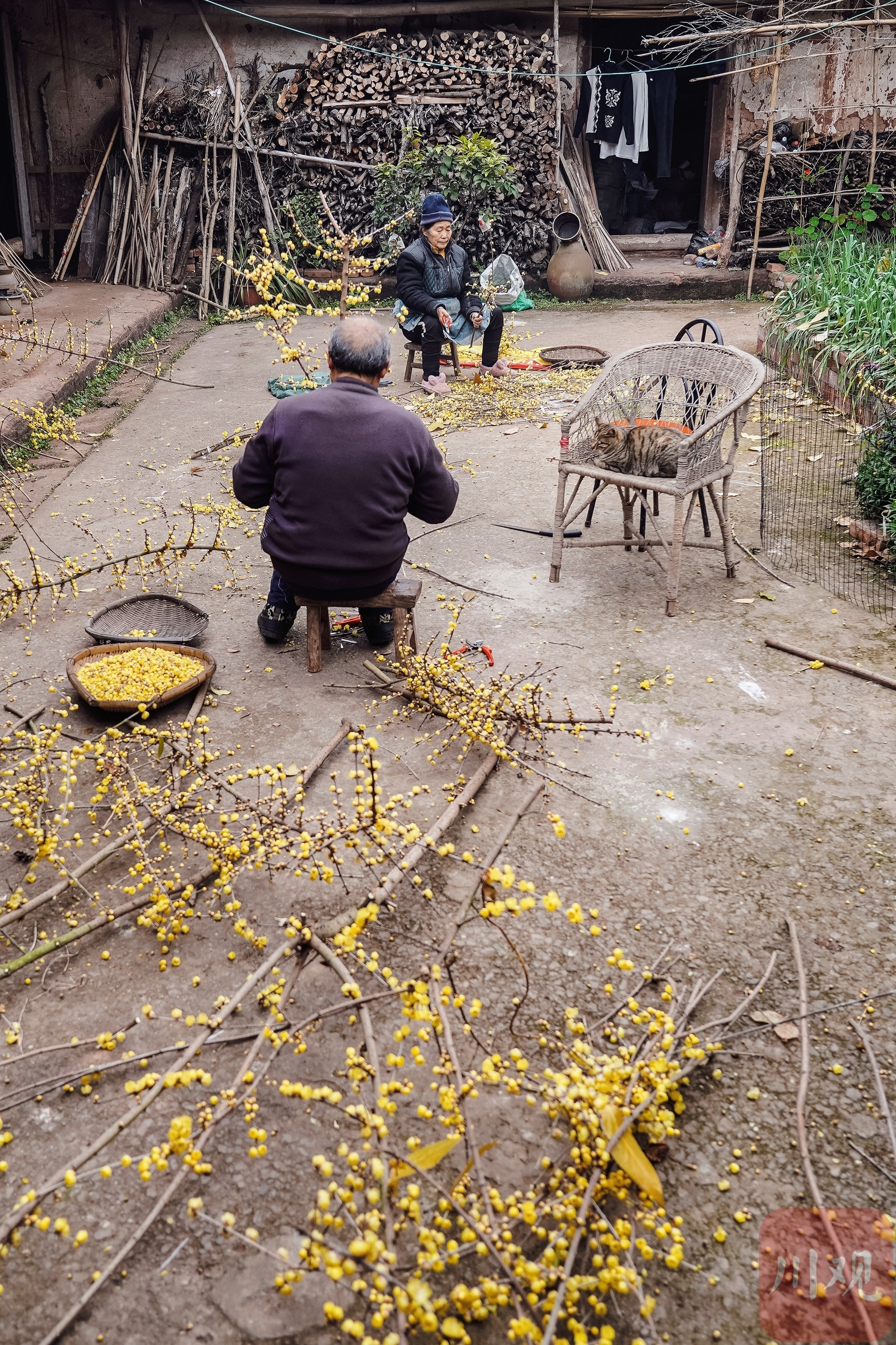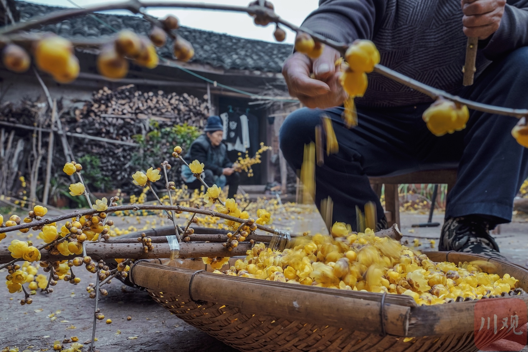 2023年1月9日,眉山市彭山区江口街道石龙村袁德全房前屋后腊梅花绽放,芳香四溢,景色宜人,袁德全夫妇正忙着为腊梅修枝造型,收集花朵供应市场。据悉,袁德全家里种植的腊梅花深受市场青睐,供不应求,增收的同时也为乡村增添一幅别致景色。