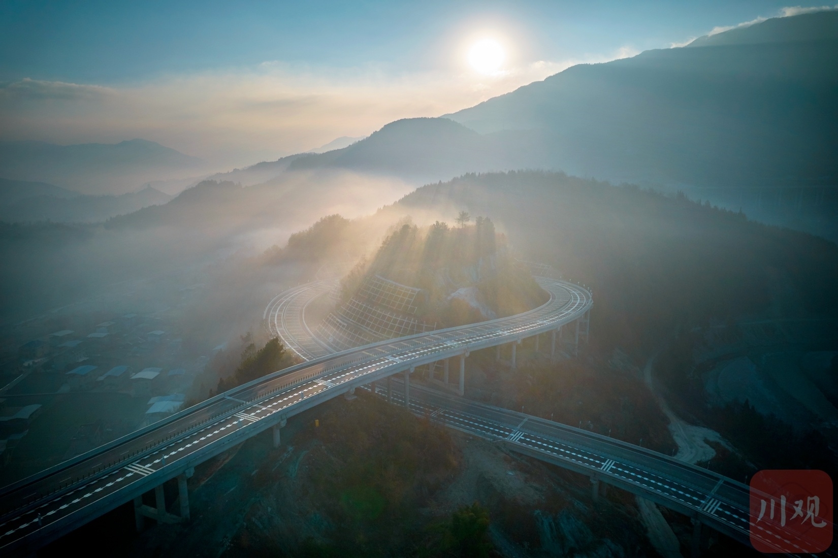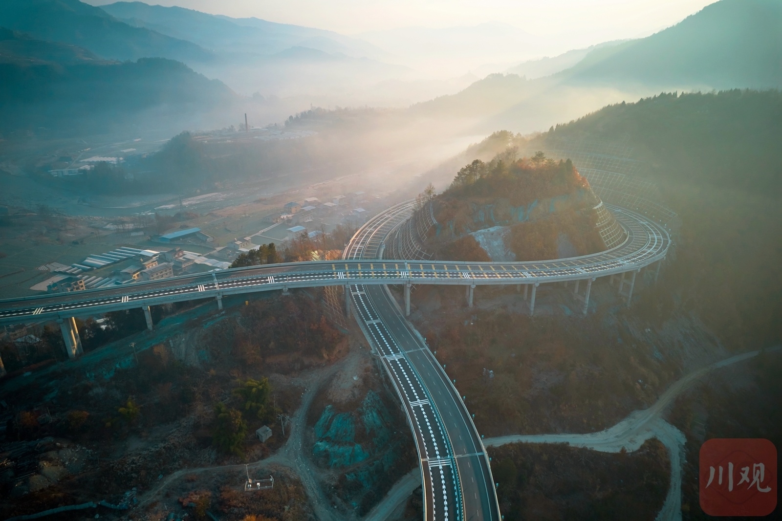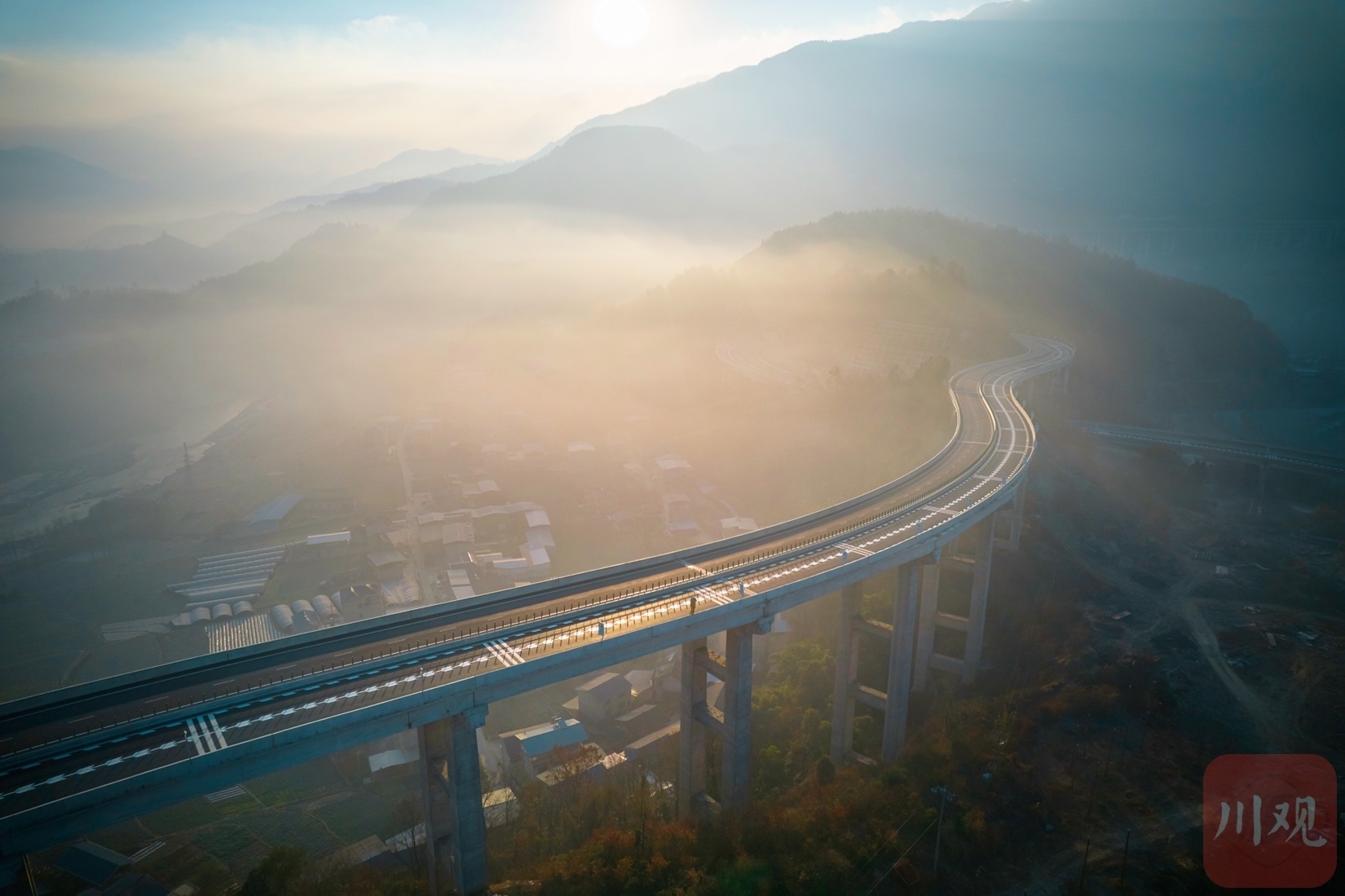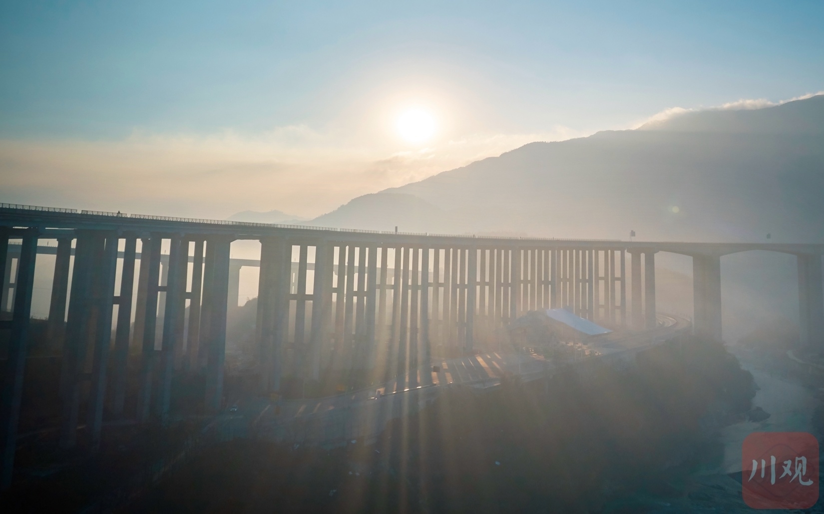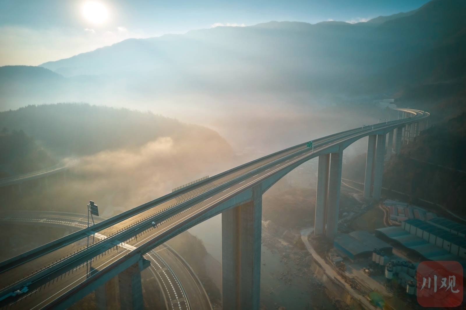 1月8日,绵阳市平武县冬日的清晨,太阳从山间升起,九绵高速平武互通大桥在晨光的装点下,五彩斑斓,如梦似幻,更显雄伟和壮观。