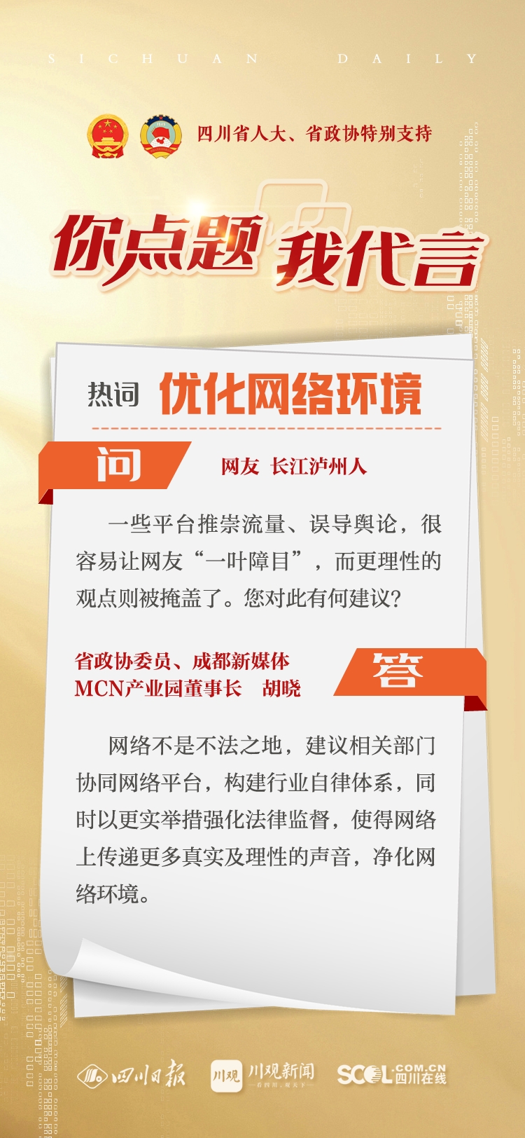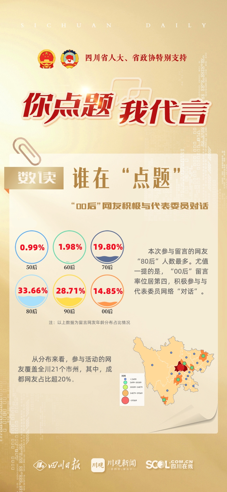 在省人大常委会办公厅、省政协办公厅支持下,省两会期间,四川日报全媒体推出“你点题·我代言——四川日报全媒体邀你上‘两会’”互动活动,诚邀网友与代表委员直接对话交流,架起直通省两会的“民心桥”。