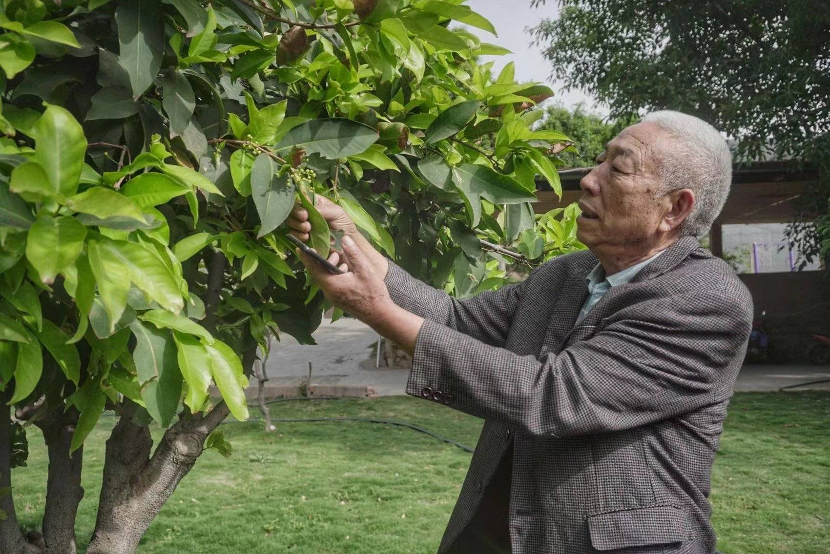 1月13日,攀枝花市仁和区大龙潭乡混撒拉村,一片果林中,李德正仔细查看果树长势。