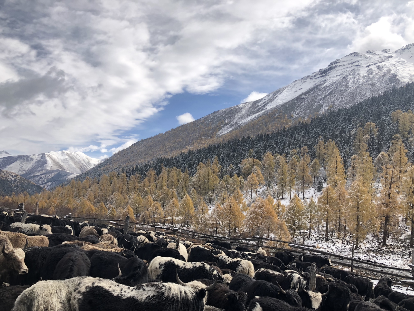 这也得到了村民牟康林的认同。“我们家一共养了90多头牦牛,为了保持品种不减收,我特意在今年引进了2头九龙牦牛。”尽管天气寒冷,但牟康林去没歇着,这几天他忙着上山,把40多头小牦牛和体弱的牦牛赶下来送进自家暖棚。