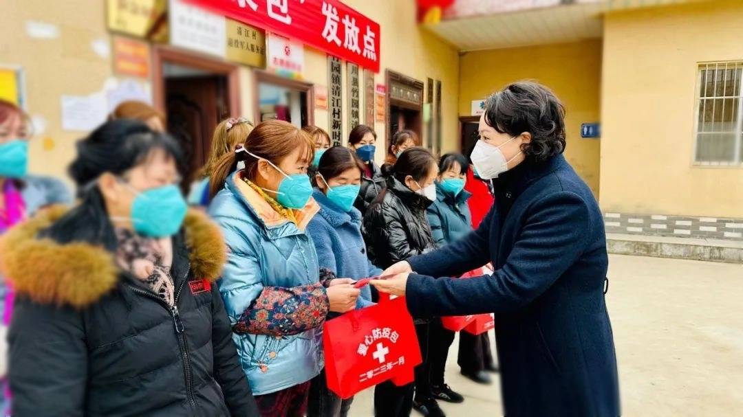 省妇联向农村妇女群众发放“防疫健康包”。