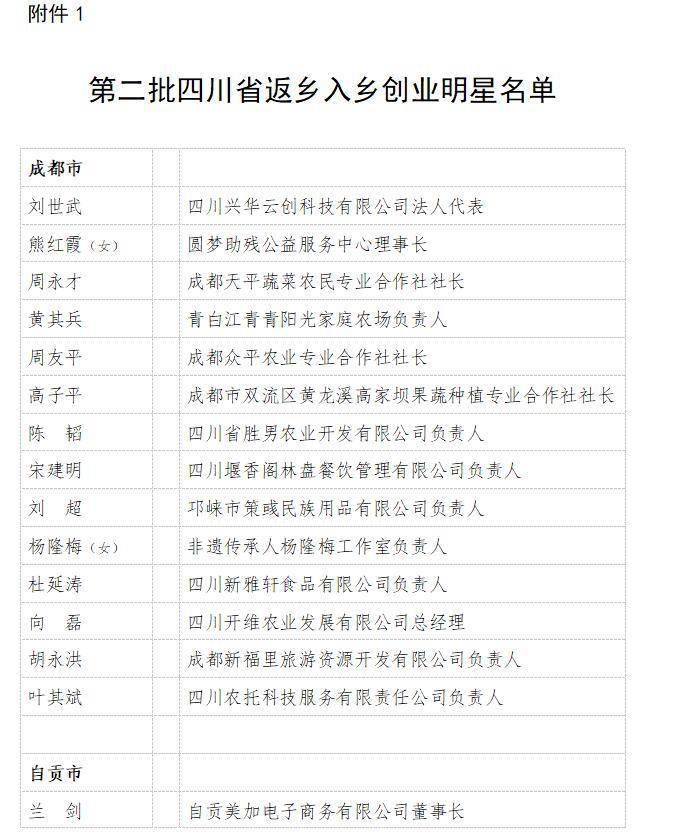 第二批四川省返乡入乡创业明星名单(完整版)