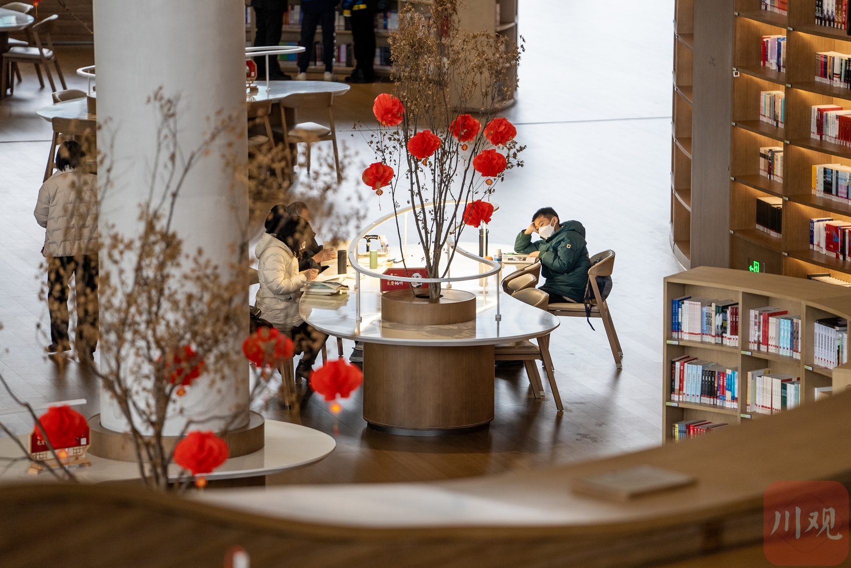 1月25日,农历正月初四,成都天府人文艺术图书馆里,不少市民选择闹中取静,看书、自习……享受假期美好时光。