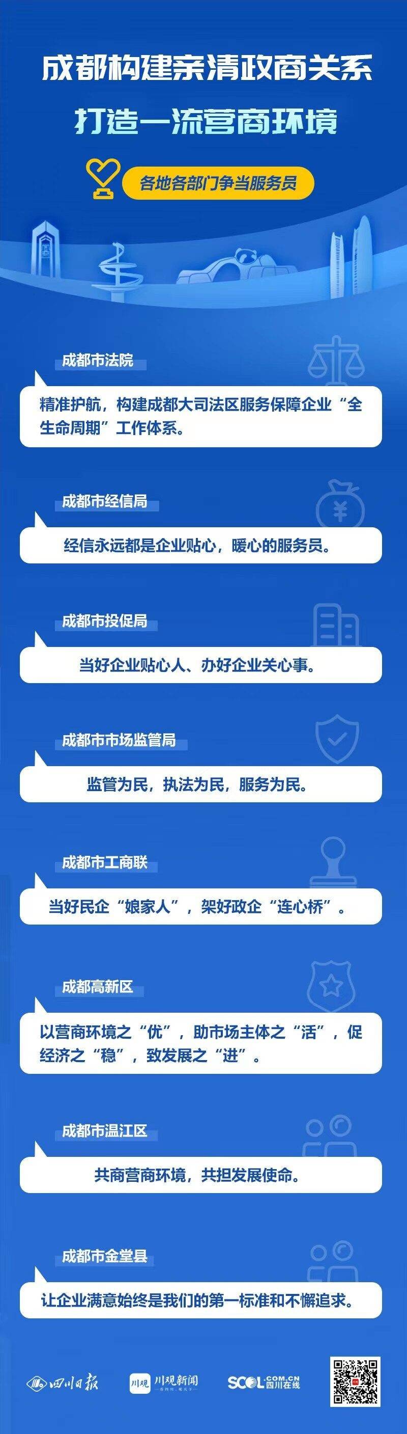 会议上设置了一个特别环节,来自成都市法院、经信局、投促局等部门,成都高新区、温江区等区县的主要负责人纷纷作出表态承诺。争当亲商助企“服务员”,各部门各地如何出招?