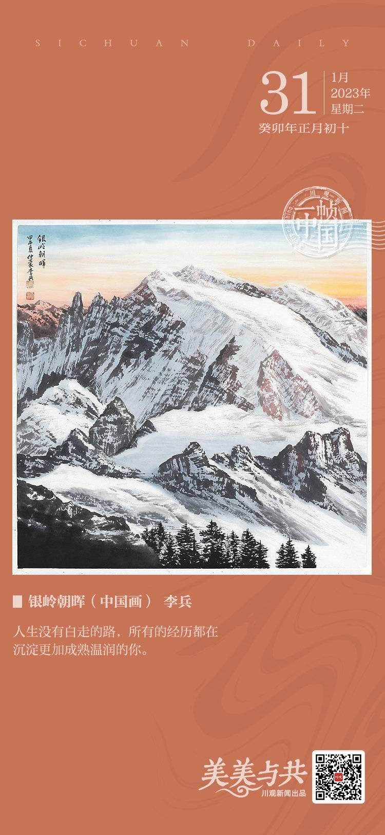 “画家在着力表现雪,但却没有画雪,这是‘实则虚之,虚则实之’的表现手法。”有评论家称赞道。我们也借由这幅《银岭朝晖》,感受巴蜀大地的大美,体悟艺术家的博大胸襟。