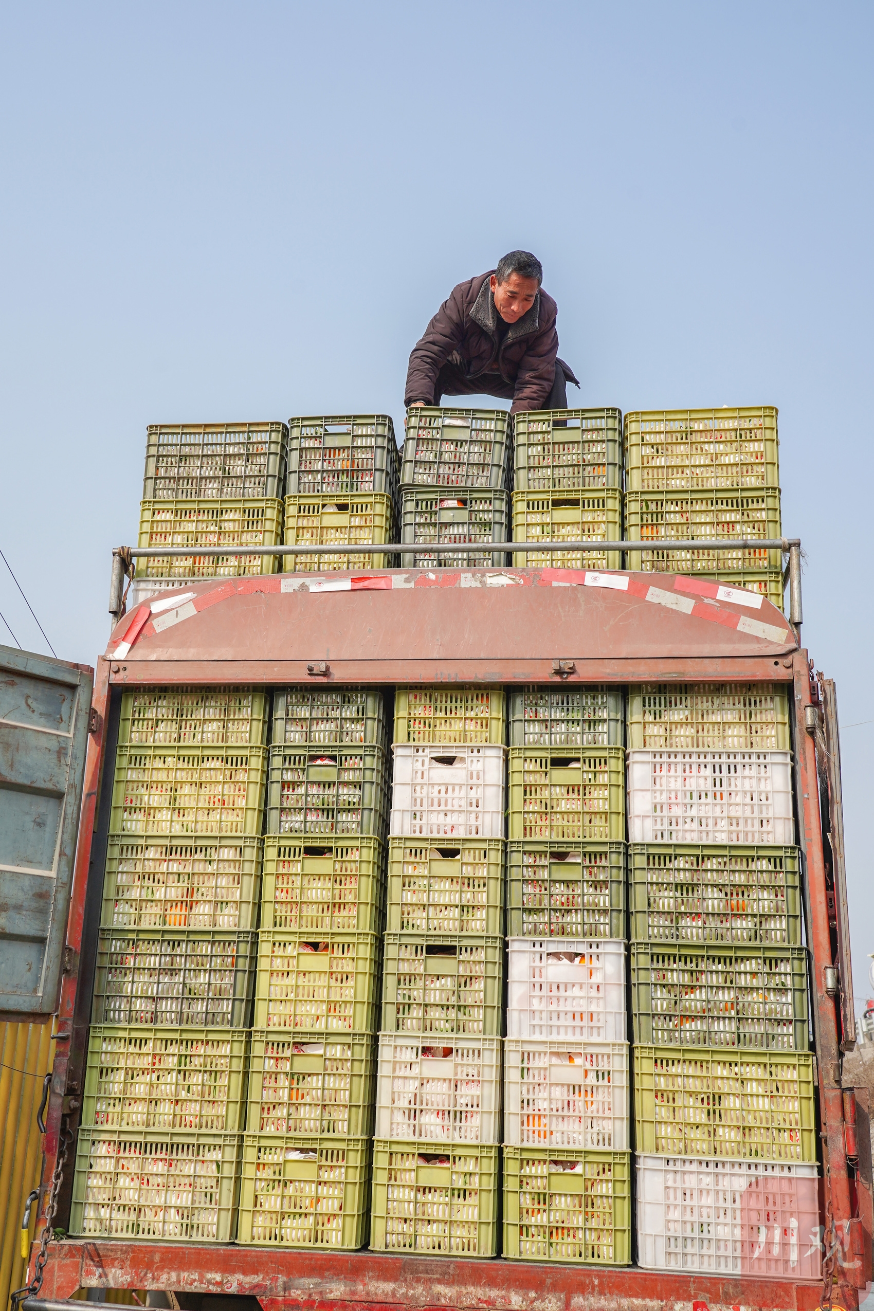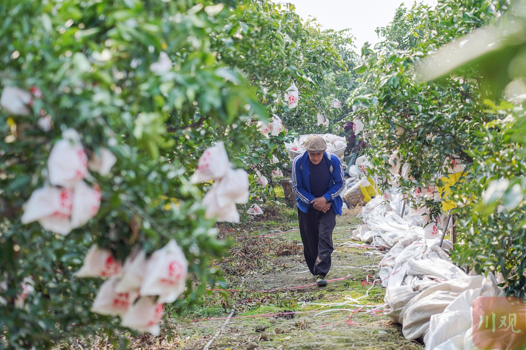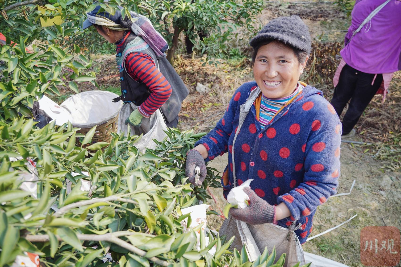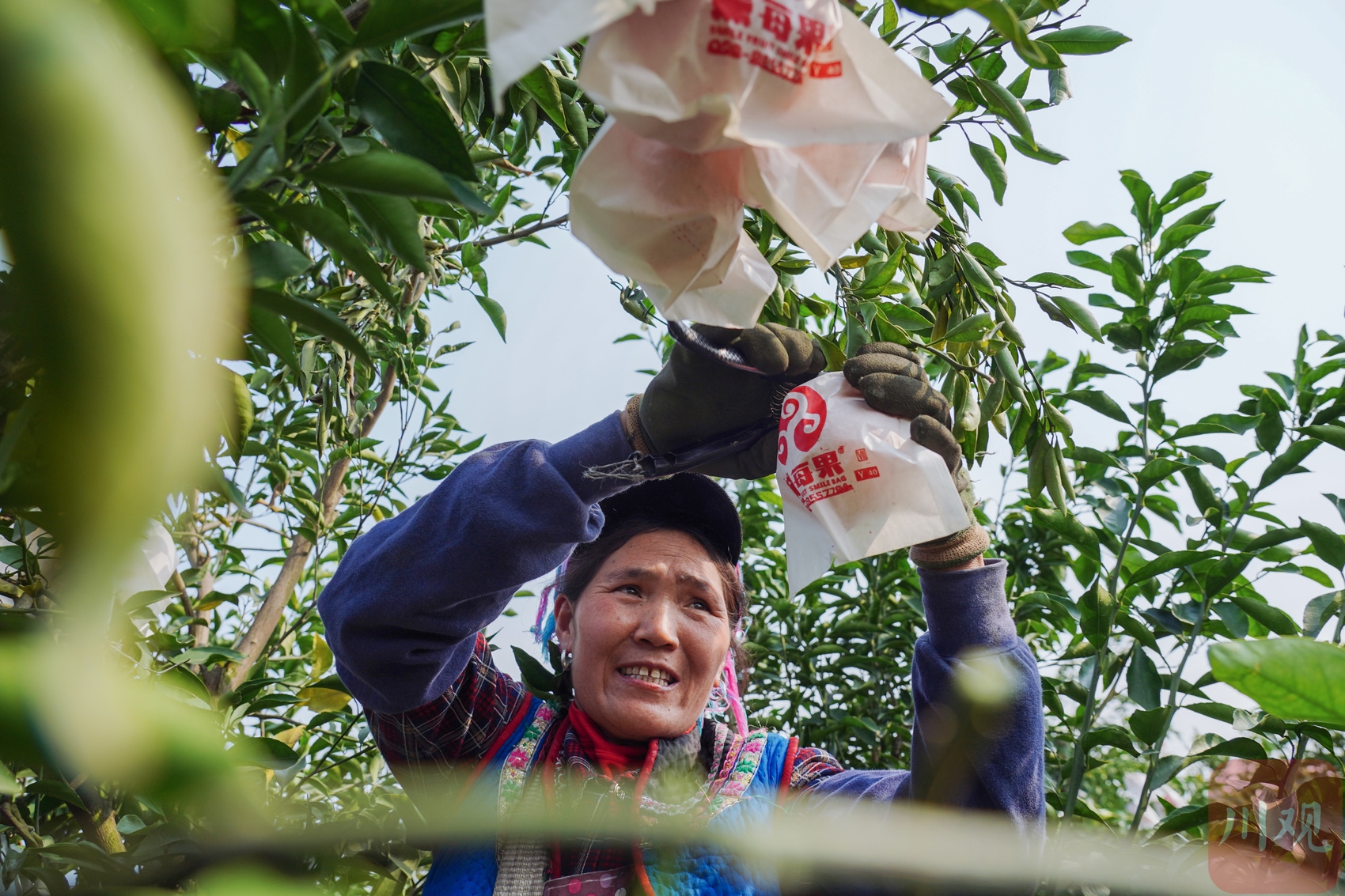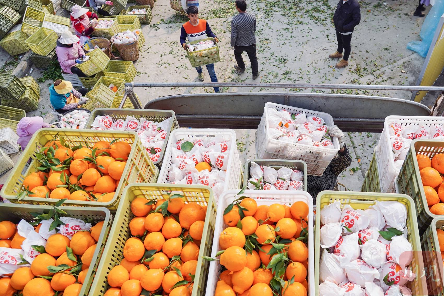 2023年2月2日,眉山市彭山区公义镇辖区内,大片黄橙橙的柑橘迎来丰收。果农们在暖阳之下,采摘、搬运、分拣、装车当地特产“不知火”供应市场,春节期间,柑橘等特色农产品深受当地市场亲睐,供不应求。