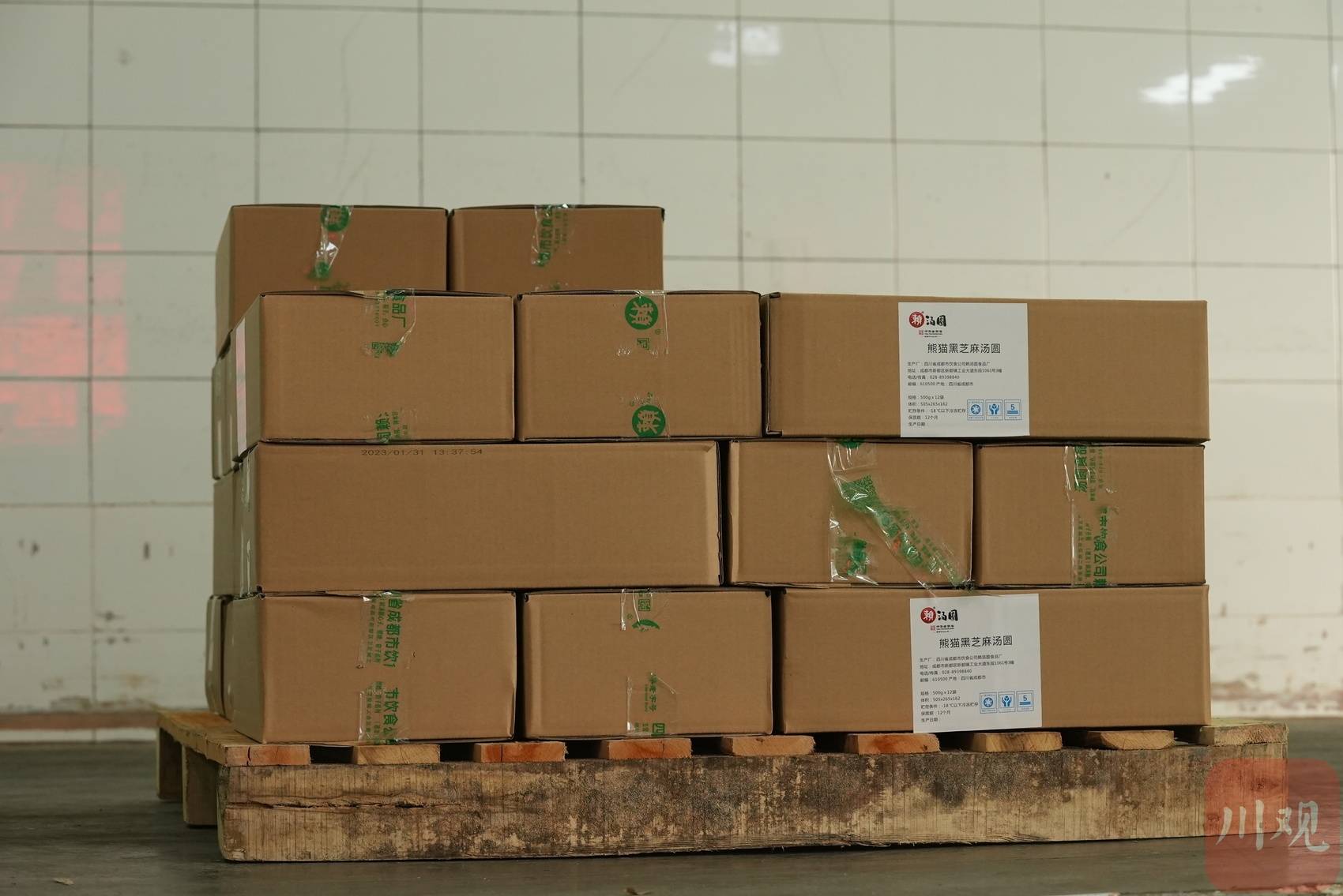 已经包装好的熊猫汤圆,即将送往餐饮酒店和商标等地进行销售