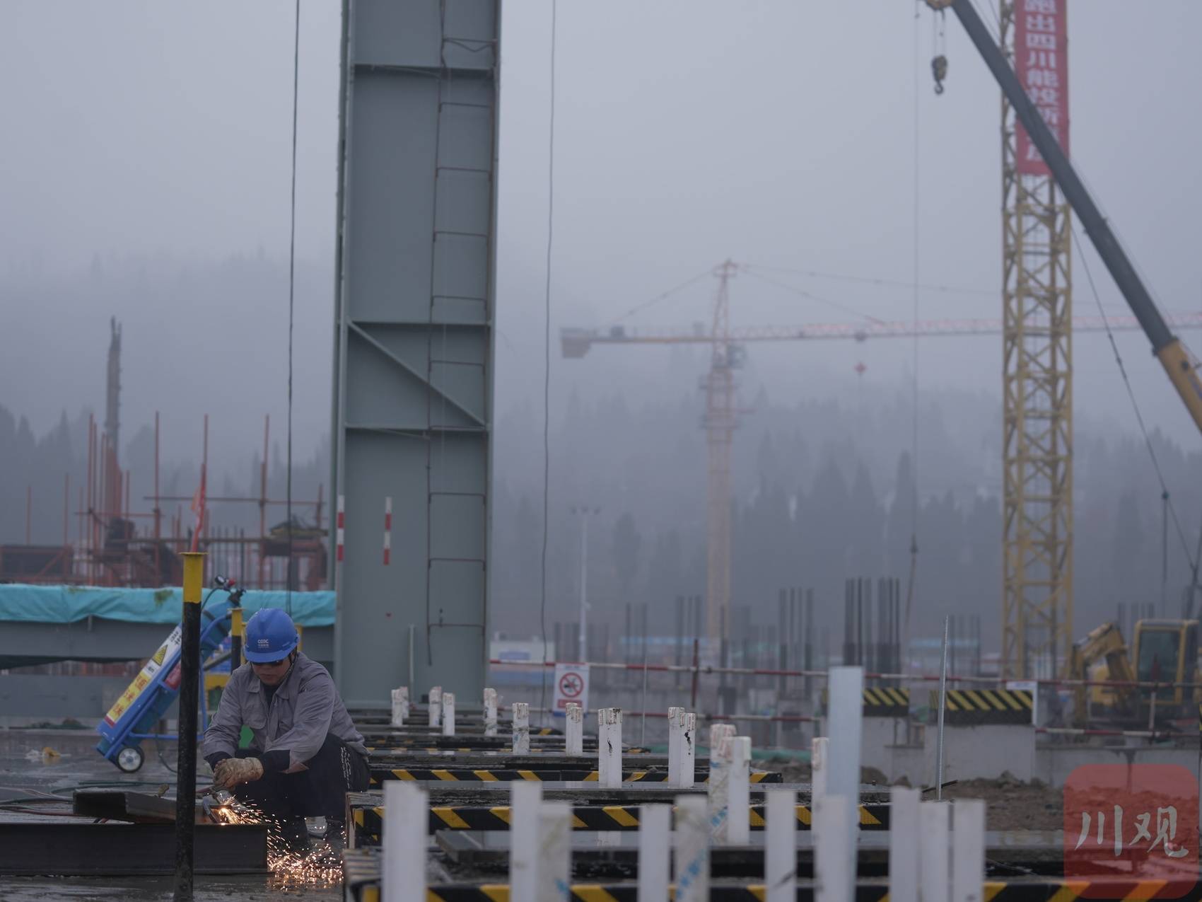 2月8日,广元经开区,四川能投广元燃气发电有限公司建设安全技术部副部长吴飞带领四川在线记者走近项目一线。一台超过10层楼高的250吨履带吊将一段高达28米的钢构举到了半空,“这是正在吊装余热锅炉的钢架。”吴飞介绍,这意味着地面以上的主体施工已经全面展开。
