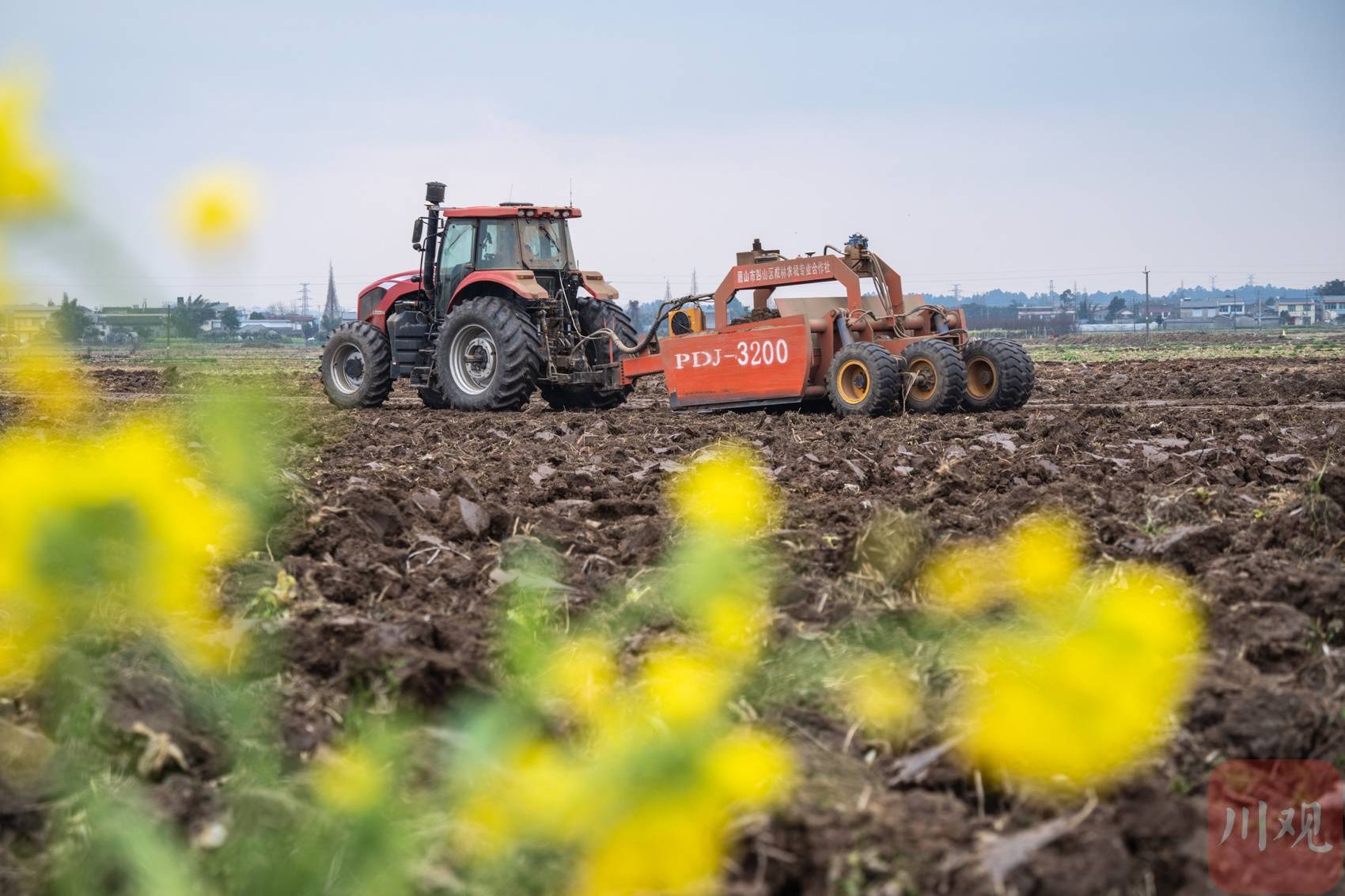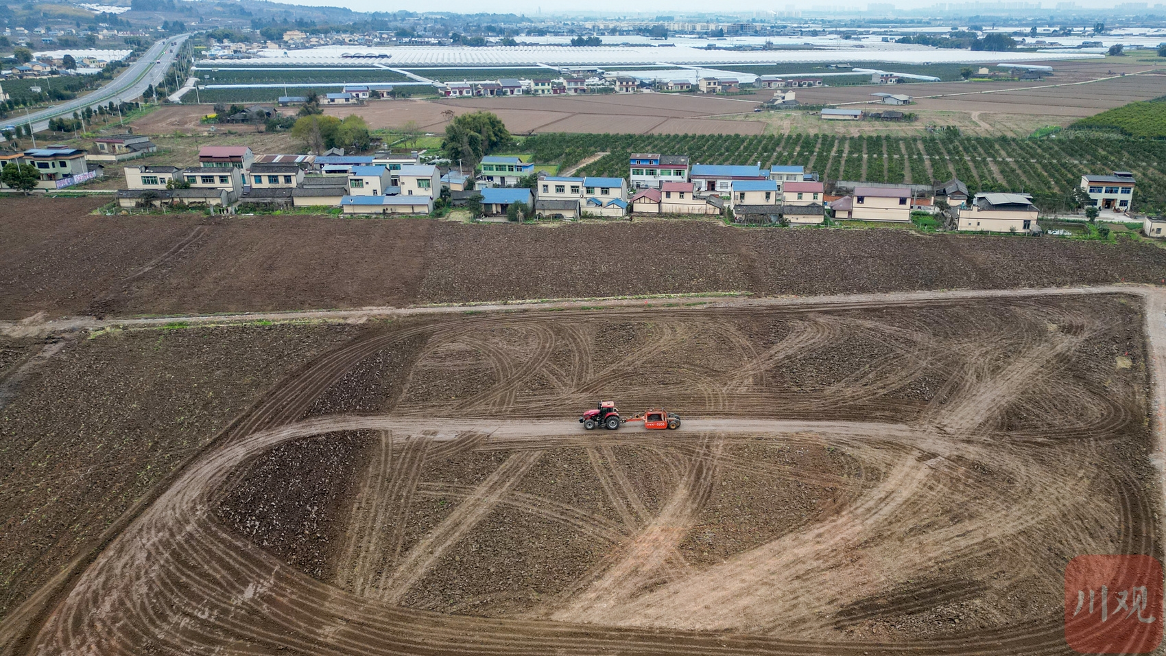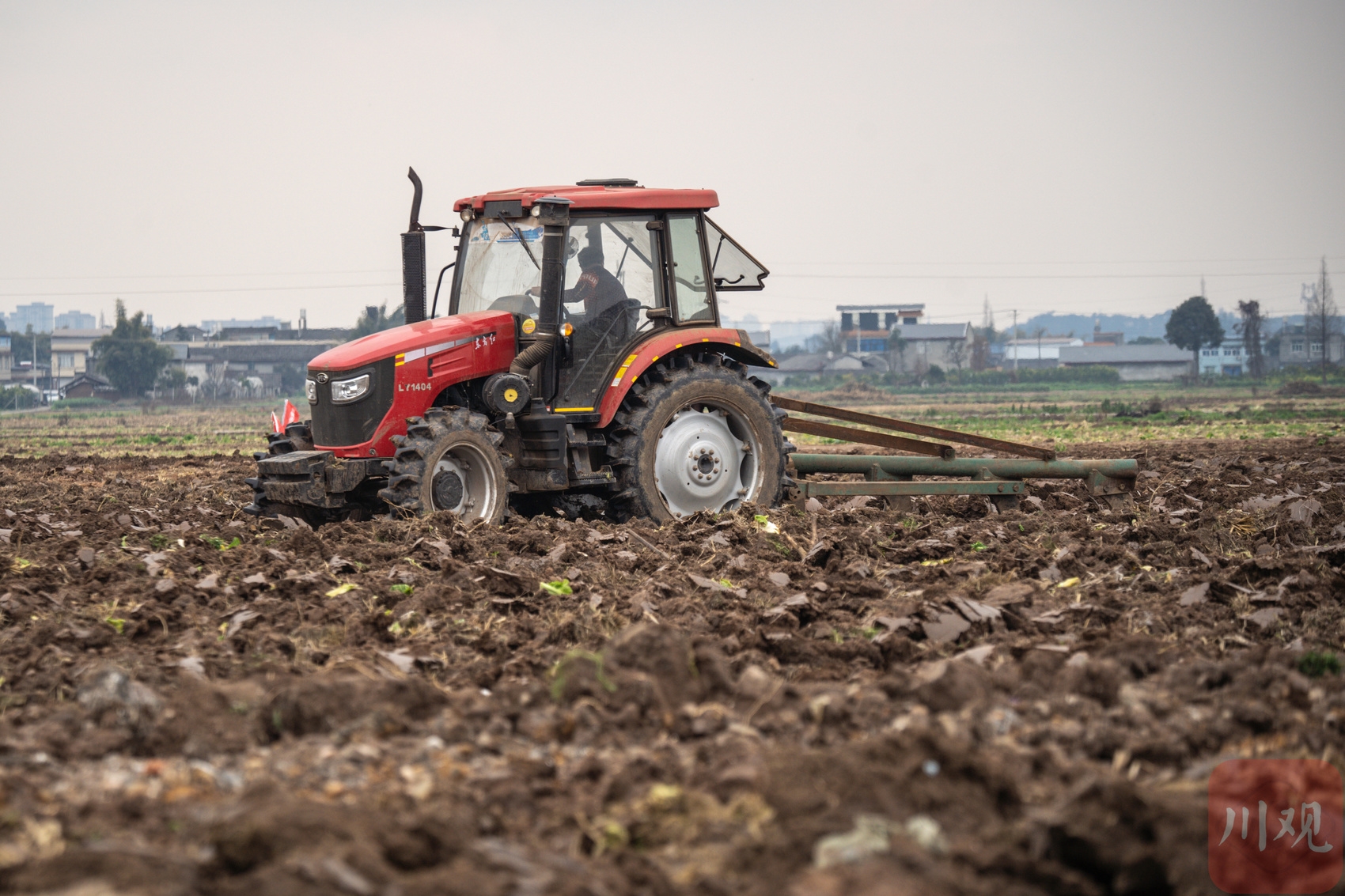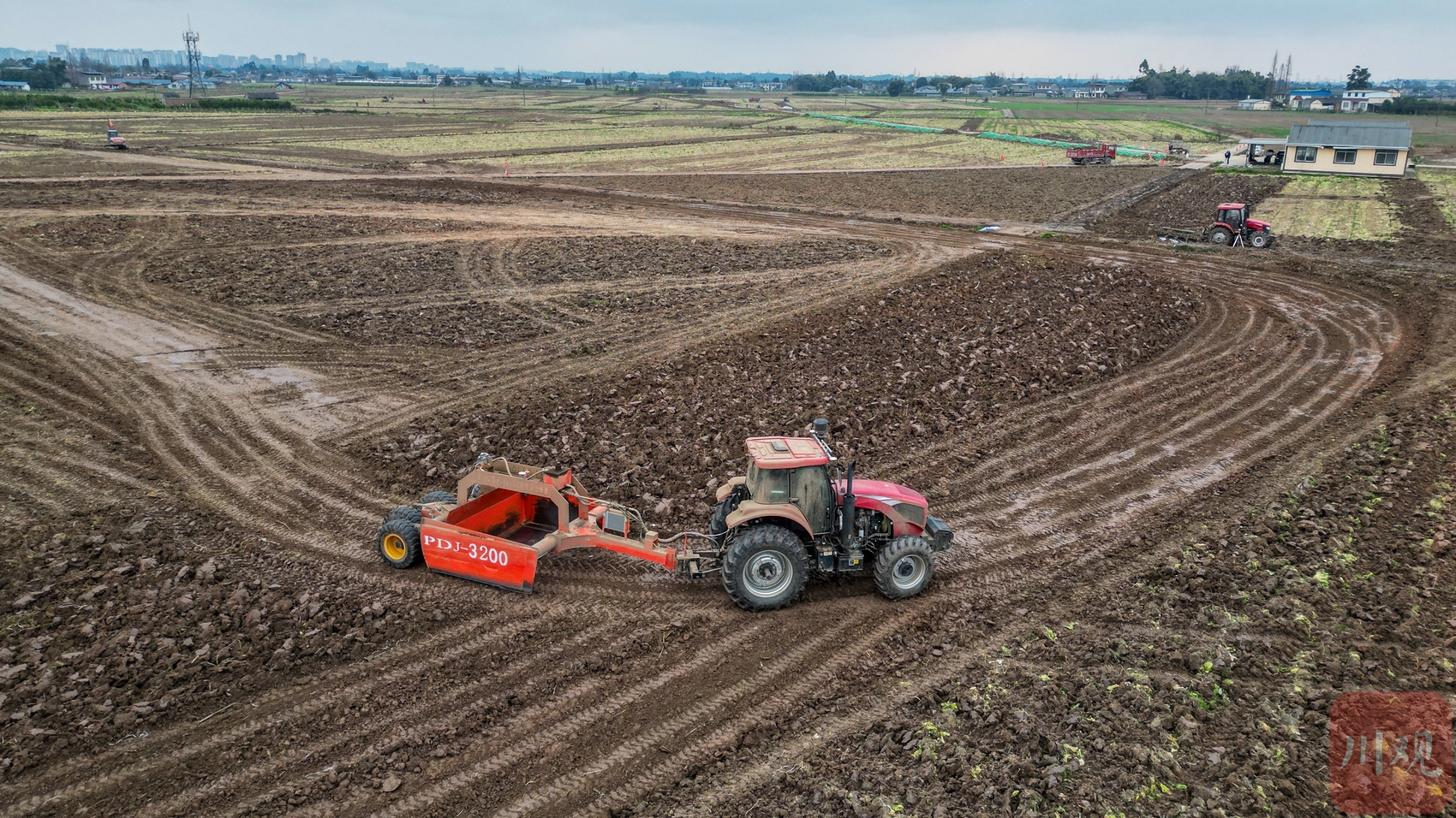 2023年2月14日,眉山市彭山区公义镇欣荣村的田间地头一片繁忙,一辆拖拉机拖着一台卫星铲运平田机在田间“奔跑”,将原有高低不平的土地全部“抹平”,为下一步的灌溉、播种以及智能化管理提供了基础条件。近年来,彭山区大力推广农业机械化,运用现代化新技术提高粮食生产效率,有效实现增收增产。
