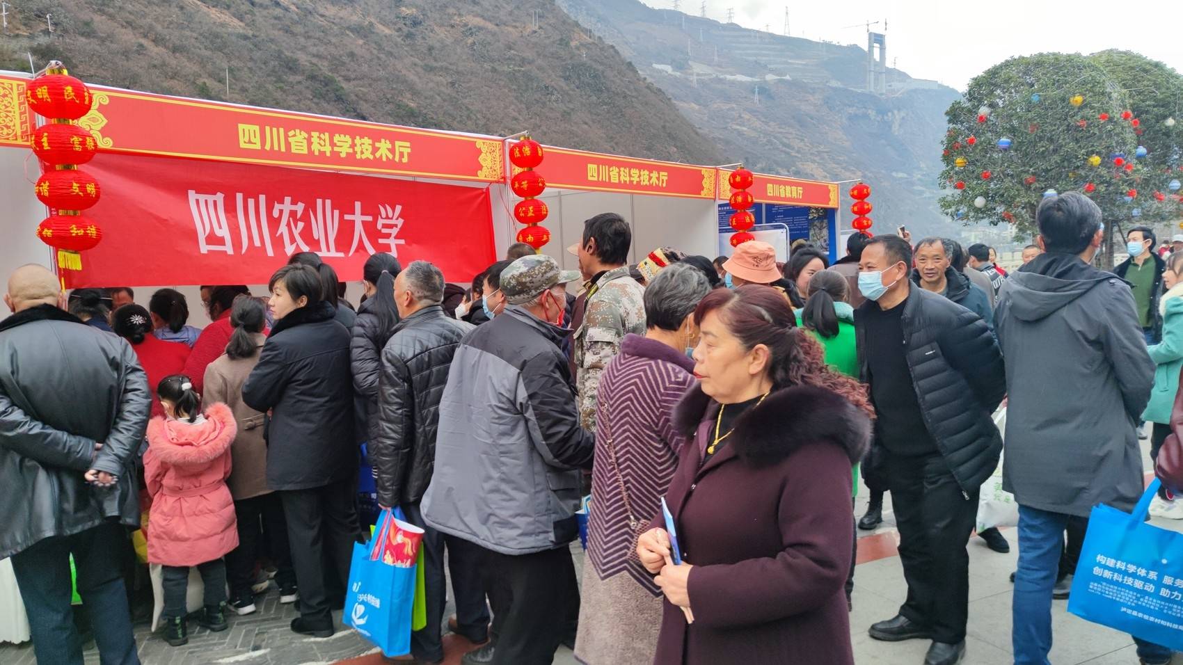 2月7日,大渡河畔的泸定县城,一个接着一个展位相连组成的长达100多米的展区,人头攒动,成为附近群众的“知识充能站”。来自四川省科技厅等多个部门和单位的专家,为当地居民开展知识科普,发放农林物资。