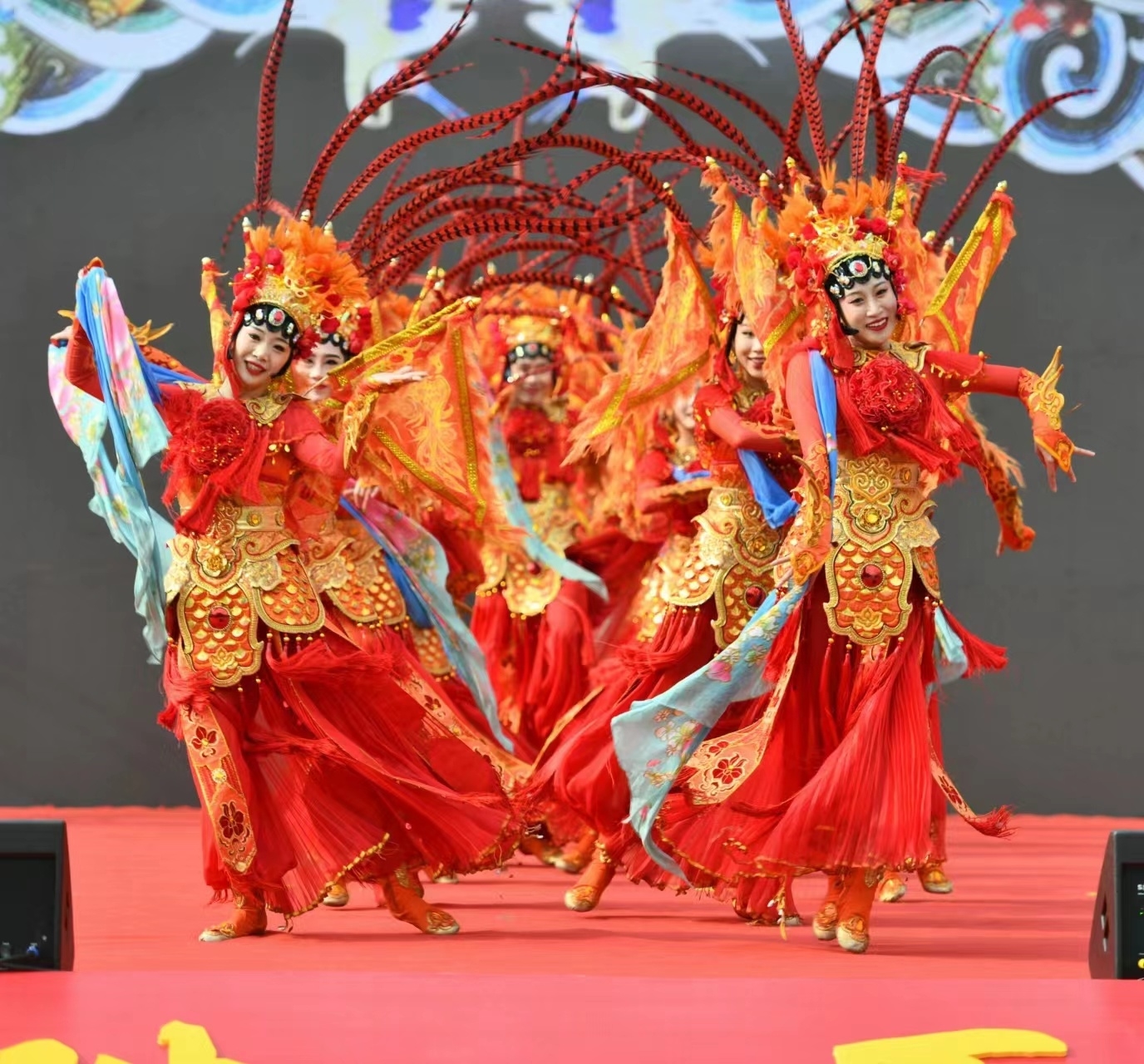 2月8日,演员们在雅安市石棉县世纪广场上表演女子群舞《英姿》。 向宇 摄