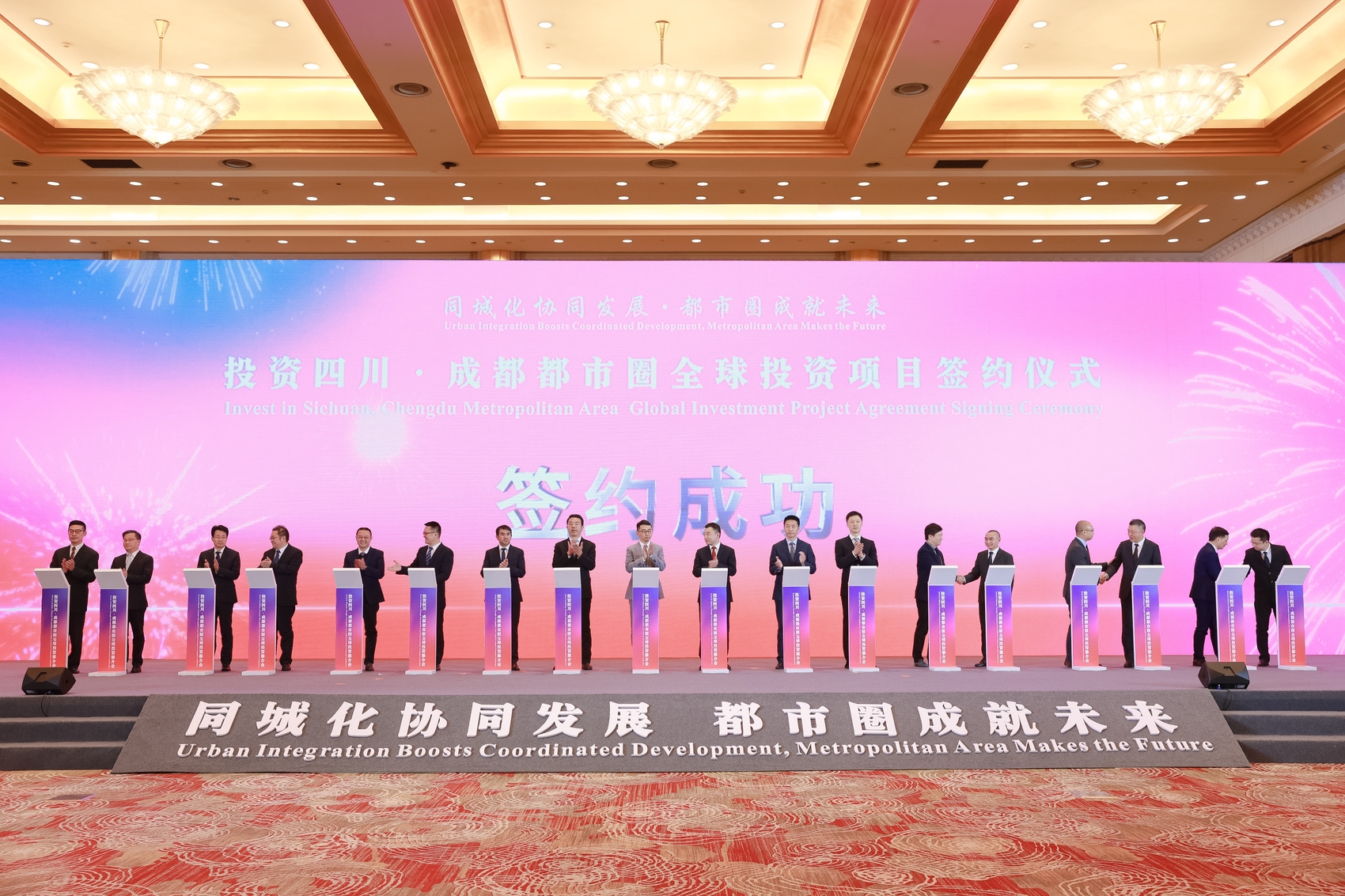 投资四川·成都都市圈全球投资推介会,有9个代表项目现场集中签约,平均投资额超25亿元。(省经济合作局供图)