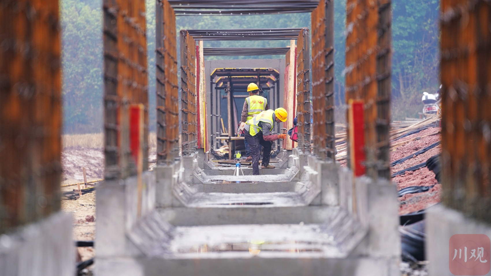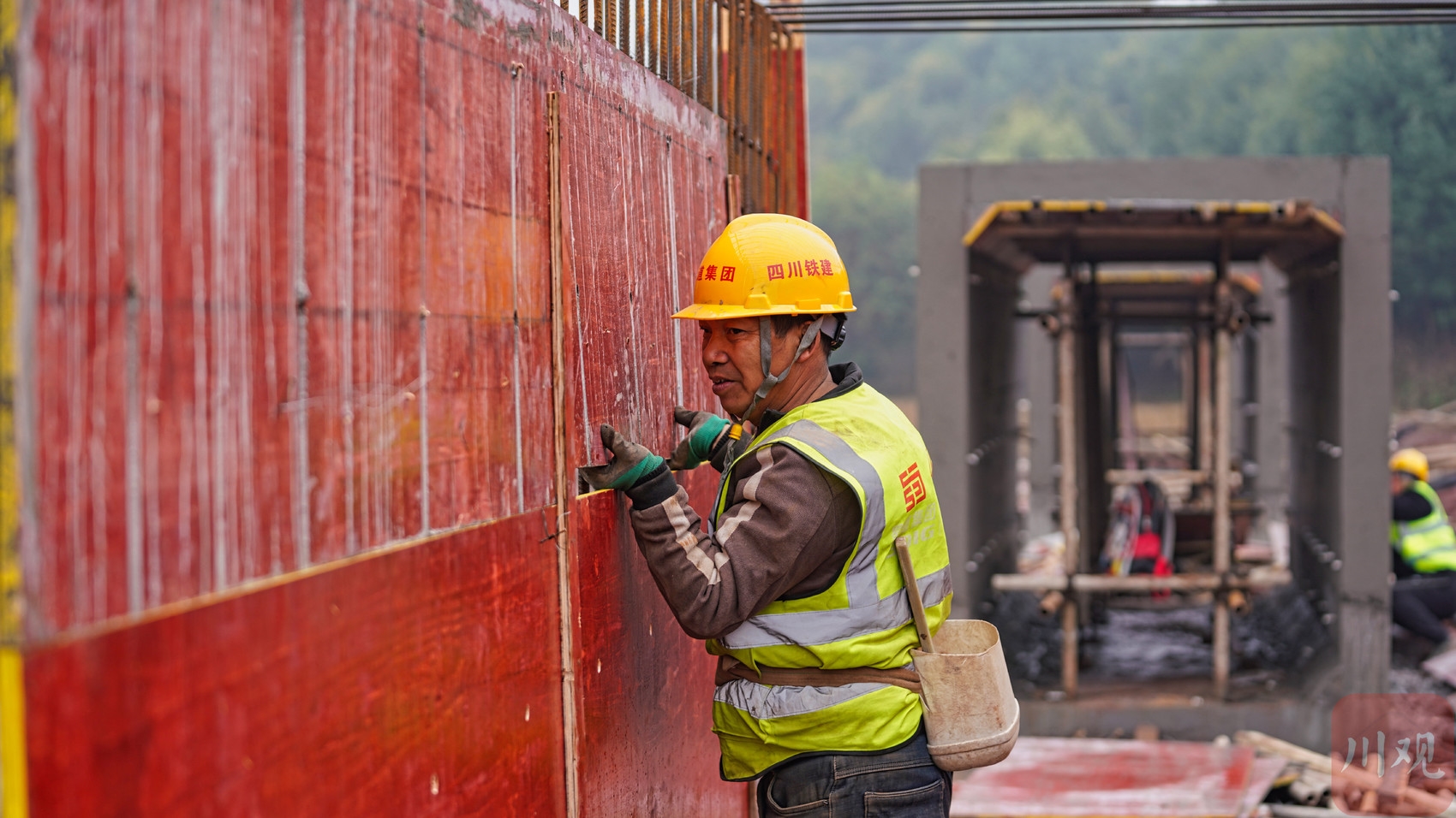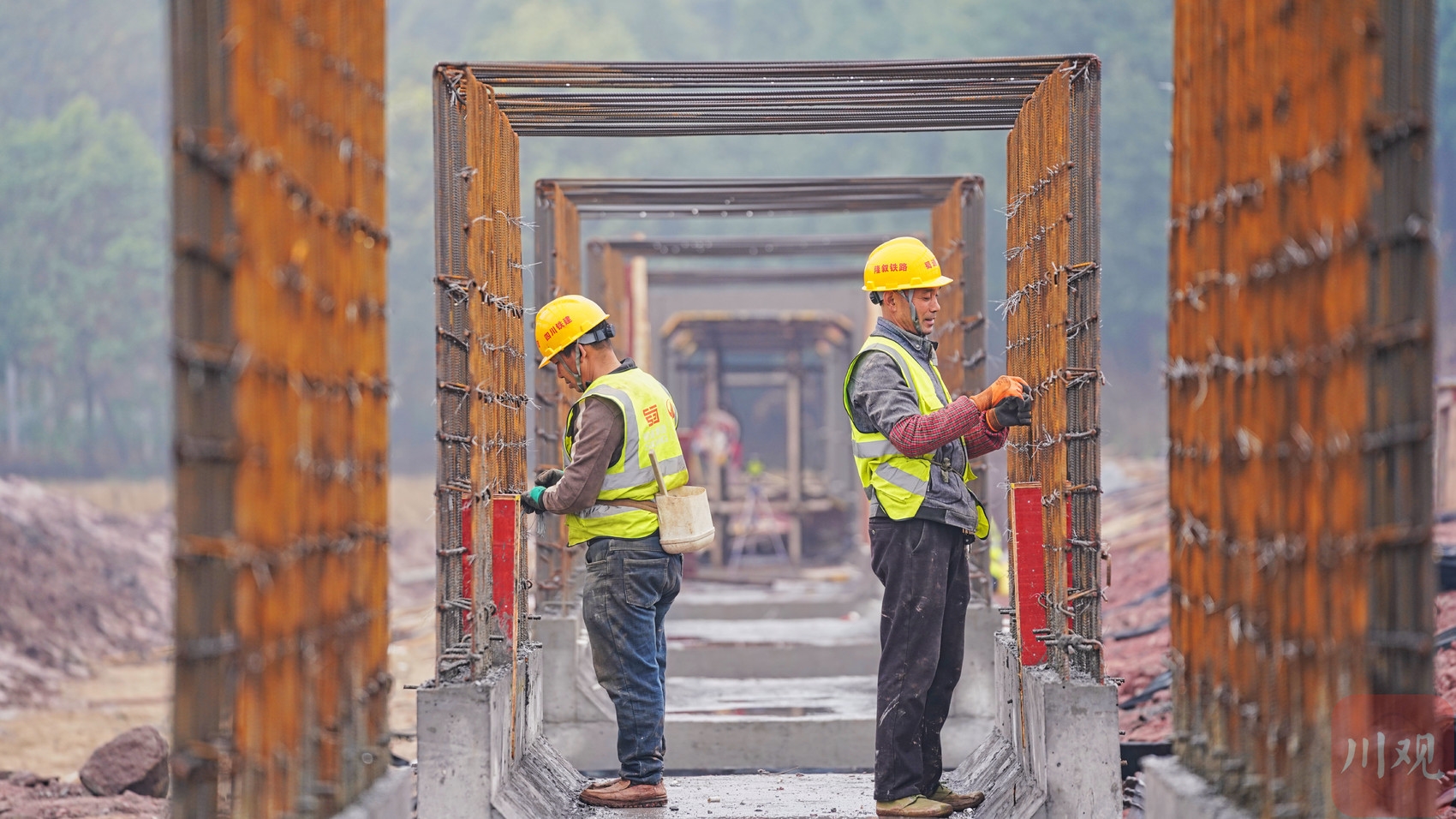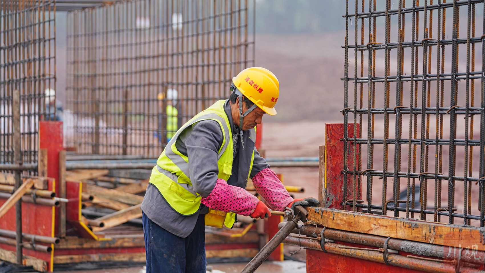 2023年2月24日,在位于泸州市龙马潭区双加镇的隆黄铁路(隆昌至叙永段)扩能改造工程项目现场,工人们正在进行钢筋绑扎作业。