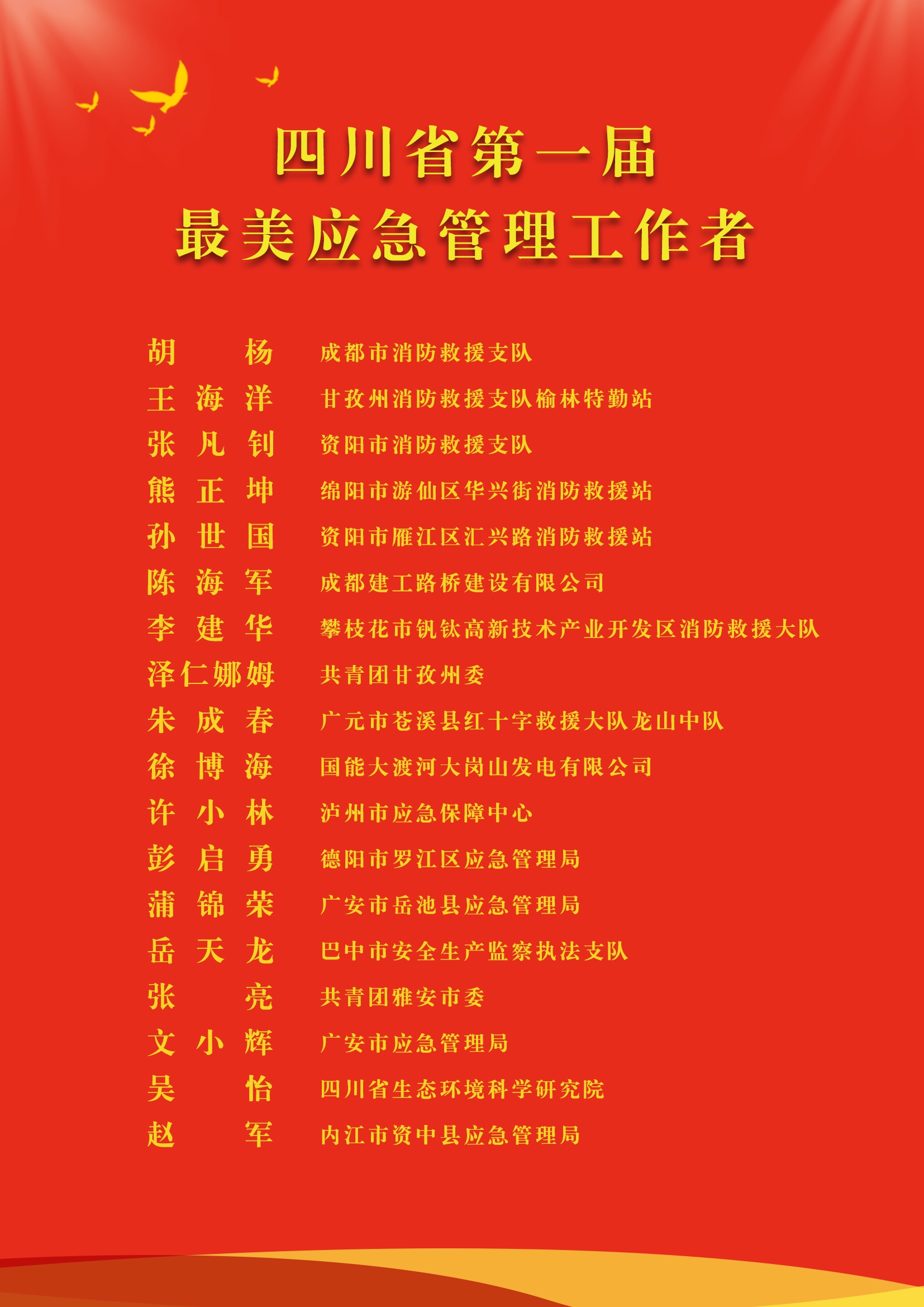 附:四川省第一届“最美应急管理工作者”