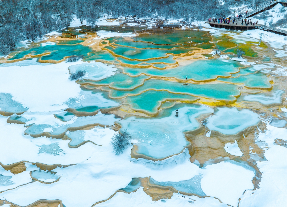随着近期旅游市场回暖,尤其是跨境游重启,景区逐渐重现往昔热闹。来自香港的游客们,在景区导游带领下,走进五彩池等代表性景点,一路走一路拍,忍不住赞叹眼前的美景。近期恰逢黄龙下起春雪,冬春交替时节“人间瑶池”的独特魅力更给游客们留下深刻印象。