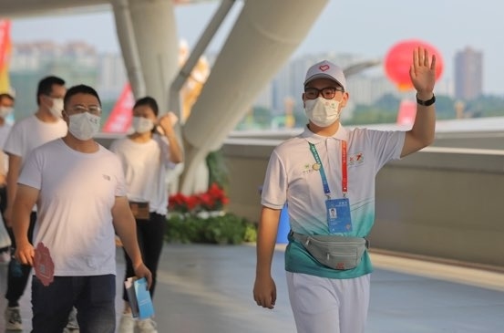 四川省第十四届运动会开幕式现场,引领员带领观众入场。四川省社会体育指导中心 供图