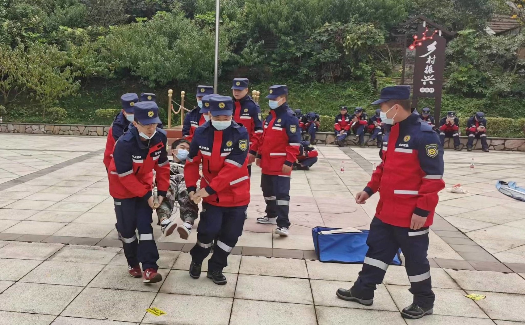 成都市龙泉驿区东安街道党员应急抢险救援队正在开展演练。